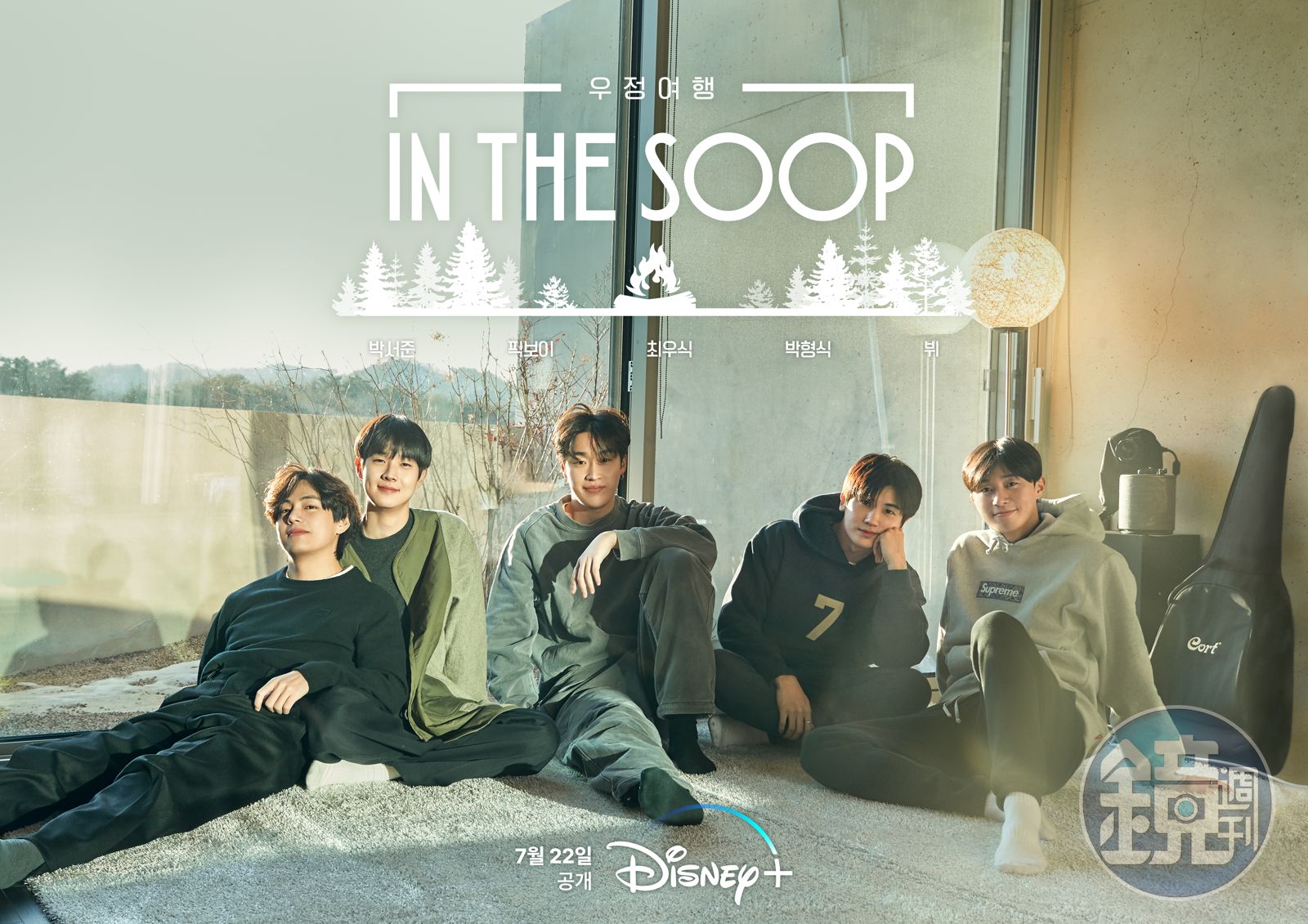 韓國天團「防彈少年團」(BTS)成員V(金泰亨)與好友朴敘俊、Peakboy、崔宇植、朴炯植是韓流粉絲眾所皆知的好哥兒們,5人組成「Wooga家族」,不時替對方站台,最近他們更首度一起錄製實境秀《IN THE SOOP:友情旅行》,節目預計7月22起在Disney+上線。