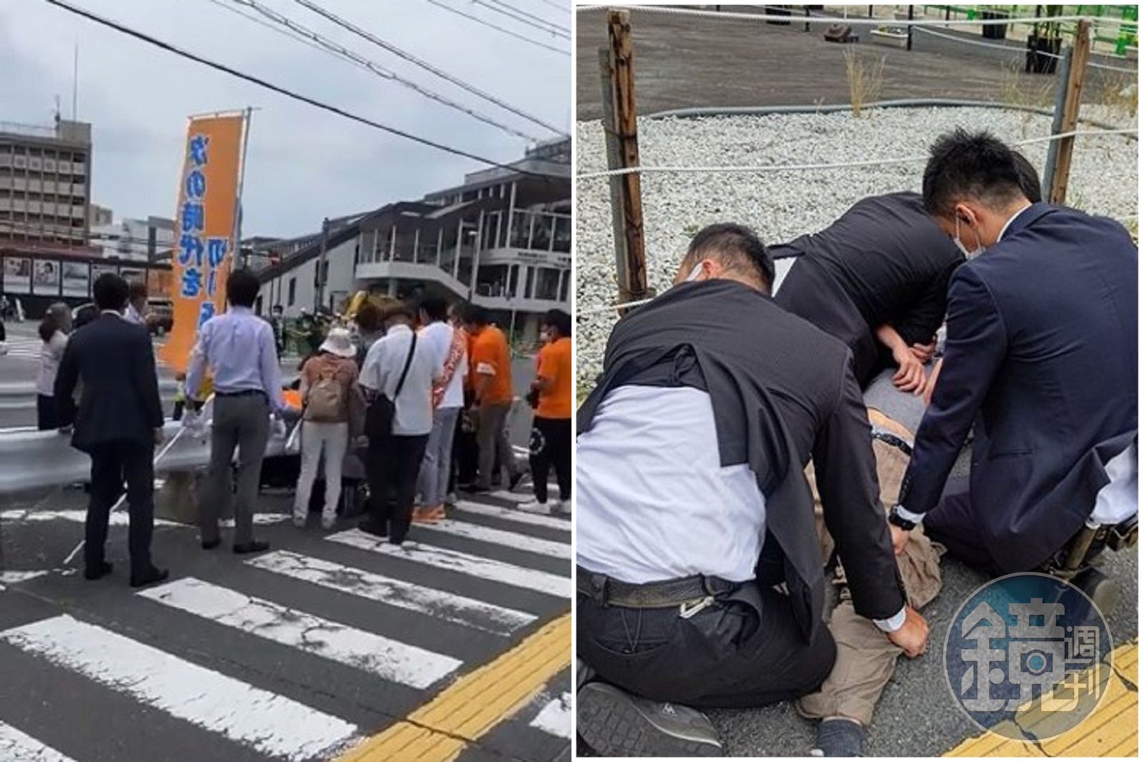 有民眾拍到安倍在戶外一處圍起來的馬路上進行演說,但瞬間遭人開槍攻擊,安倍也馬上倒下,有民眾也錄下這驚悚的瞬間。當地警方指出,安倍中彈後被送往奈良縣立醫科大學急救,在送醫期間仍有意識,也會回應急救人員。