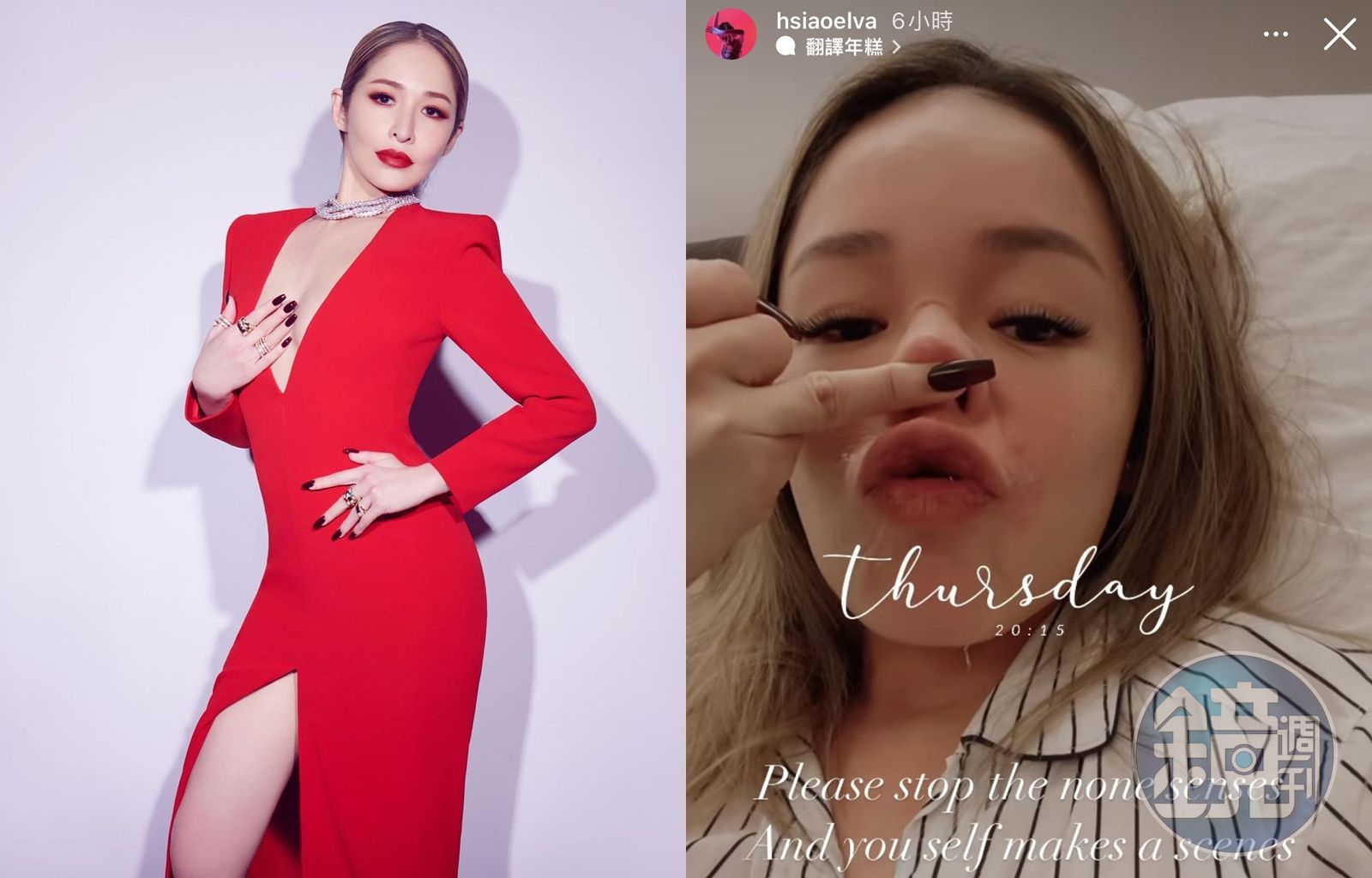 除了自清,蕭亞軒也轉發一段Podcast節目《愚樂百昏百》音檔,主持人劭中、歐娜都討論起Elva在金曲獎的「巫婆鼻」爭議,劭中坦承他有當起「柯南」,認真找Elva定格照片,並逐一放大檢視,結果發現,Elva之所以鏡頭上會感覺有巫婆鼻,是因為她頭頂上有燈光打下來,導致鼻子下緣變成有一區出現陰影,鏡頭再拉遠一看,就會很像鷹勾鼻。