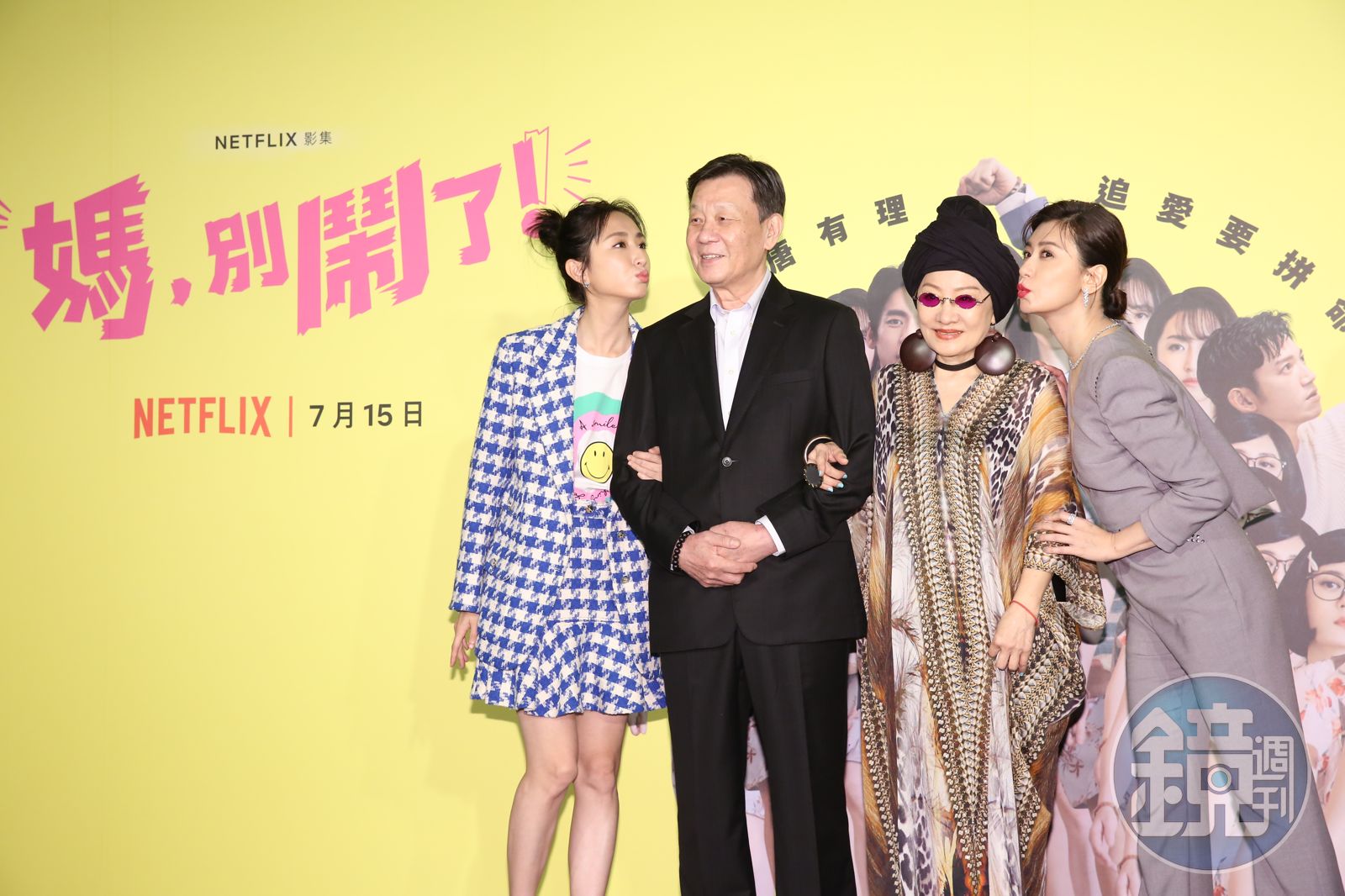 戲裡多位女主角對感情追愛的態度都是直接不扭捏,曾莞婷更是和鍾承翰在片場見面第一天就有肢體碰觸的激情戲。一心渴望尋找第二春的比莉也有床戲,她被問到此一開始還忘記自己有沒有床戲,隔了半晌才想起自己當時尷尬的景況,還說當天兒子周湯豪剛好來探班,戲裡跟她對戲的外籍老先生一角,製作單位找了很多人她都不滿意,最後雀屏中選的可是從好萊塢找來軋一角的資深演員。比莉被問到自己擇偶的標準,她笑說:「要帥啊,要懂音樂,很幽默,隨緣啦!」不過她戲外糗事不斷,還自爆曾從廁所走出來時裙子沒拉好,夾在內褲上外帶一條衛生紙拉得好長掉地上,簡直笑翻眾人。《媽,別鬧了!》預計2022年7/15 Netflix 全球獨家上線。