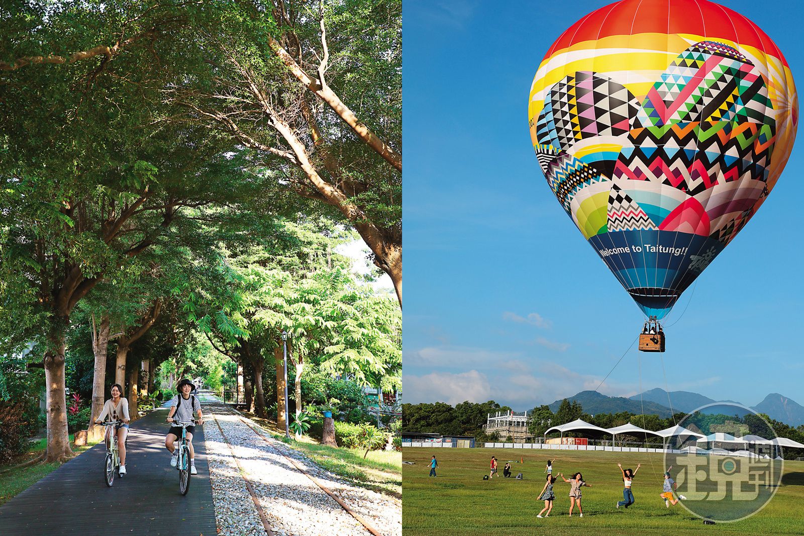 夏季來到台東除了玩水,還有另一項重頭戲「台灣國際熱氣球嘉年華」,這場盛會中最熱門的「熱氣球繫留體驗」,讓許多遊客得以從高空中俯瞰鹿野與縱谷的遼闊地貌美景,若來不及預約,也能在鹿野高台展開追球行程。