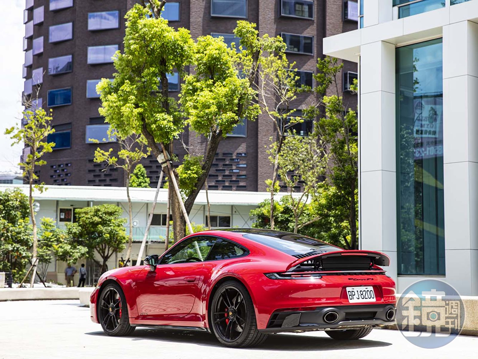 與上一代車型相比,992世代的車款在外觀上採用了更加奔放的設計,更大輪拱的使用,讓車輛使用上了前20吋後21吋的胎圈設定,重新設計過的保險桿和LED頭燈造型以及GTS車型專屬的黑化處理,搭配上選配的胭脂紅車色,展露出高調卻不失優雅的風格,加上選配的車頭抬昇系統,讓這輛車就算面臨到停車場的坡道,也不太會有刮到前保桿的問題。