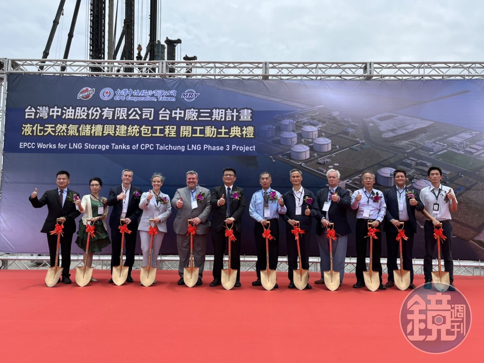 今日的開工動土典禮由台灣中油董事長李順欽、協同統包廠商英商貝泰公司總經理戴瑞恩及銘榮元公司總經理廖士銘共同主持,包括美國在台協會台北辦事處長孫曉雅、經濟部政務次長曾文生、台中港務公司及勞動部職安署等共同參與,與會貴賓均肯定這項工程有助於推動節能減碳政策,達成穩定國內供氣的目標。