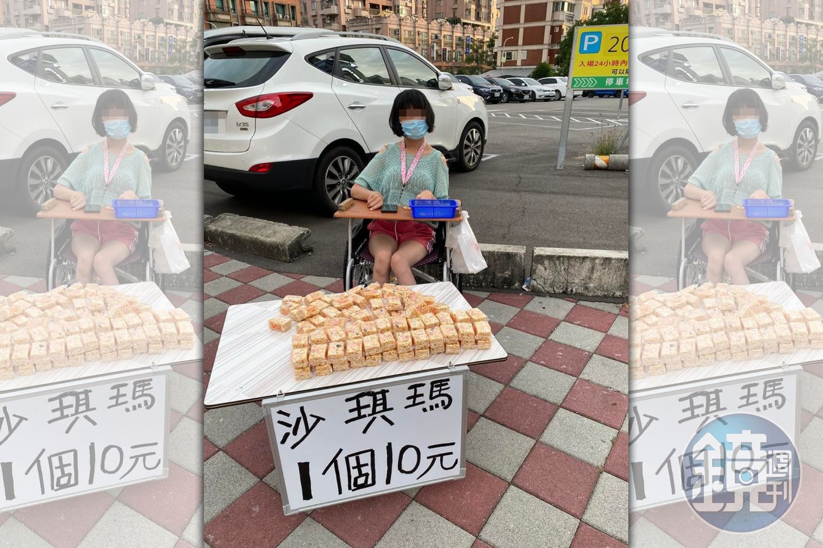蔡淇華po文表示,他日前經過台中市南屯、文心路口,看到腦麻女子在賣沙琪瑪,買了一些,但天快黑了,還很多沒賣掉,蔡表示「問她說可以拍照幫她推廣嗎?她說OK,問她以後還會在這裡擺攤嗎?她說會。」