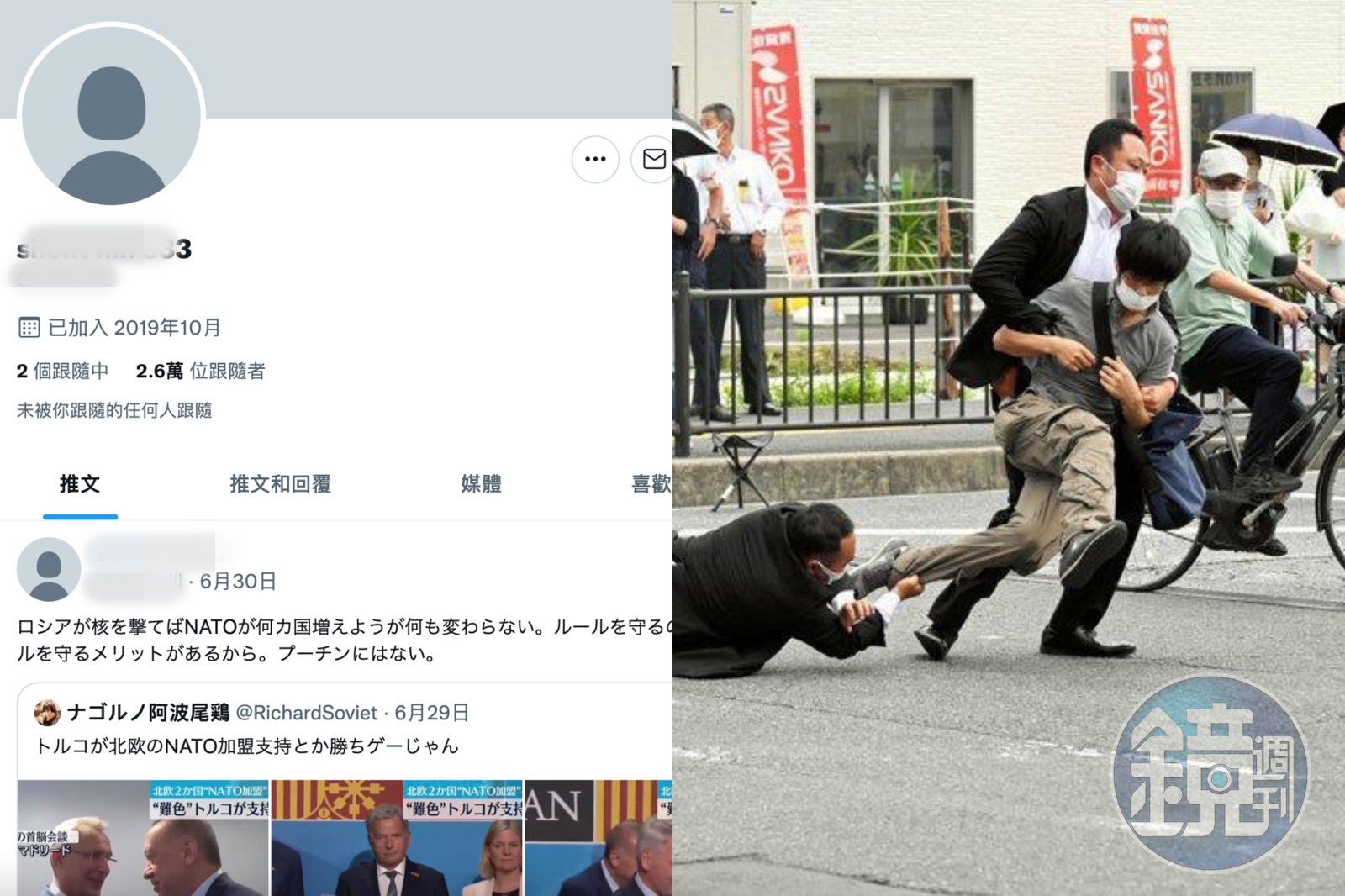 綜合日媒報導,山下徹也的帳號近日被找出,其貼文中充斥著大量有關恐怖主義、政爭、政治以及經濟等內容。而他的最後貼文為6月30日、犯案前8天,轉發了有關NATO(北大西洋公約組織)的貼文,並評論:「如果俄羅斯發射核武,無論NATO國家增加幾個也不能改變什麼。遵守規則有遵守規則的好處,對普丁沒有。」