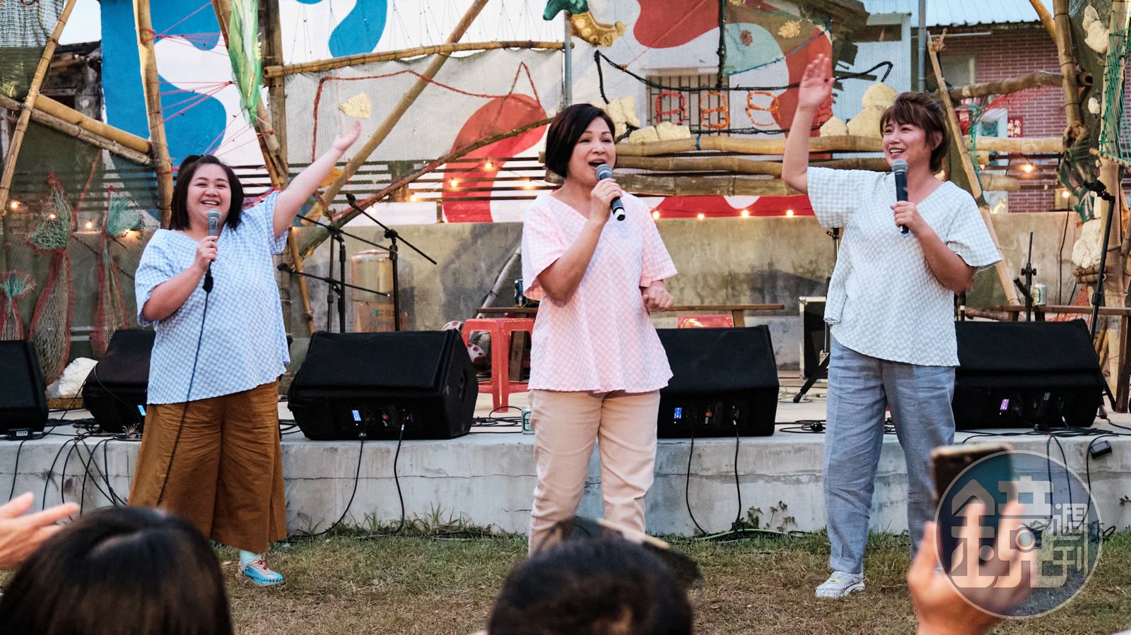 鍾欣凌(左起)、楊貴媚、嚴藝文在市集高歌。(桂田文化藝術基金會提供)發布時間:2022.07.18 12:05 臺北時間