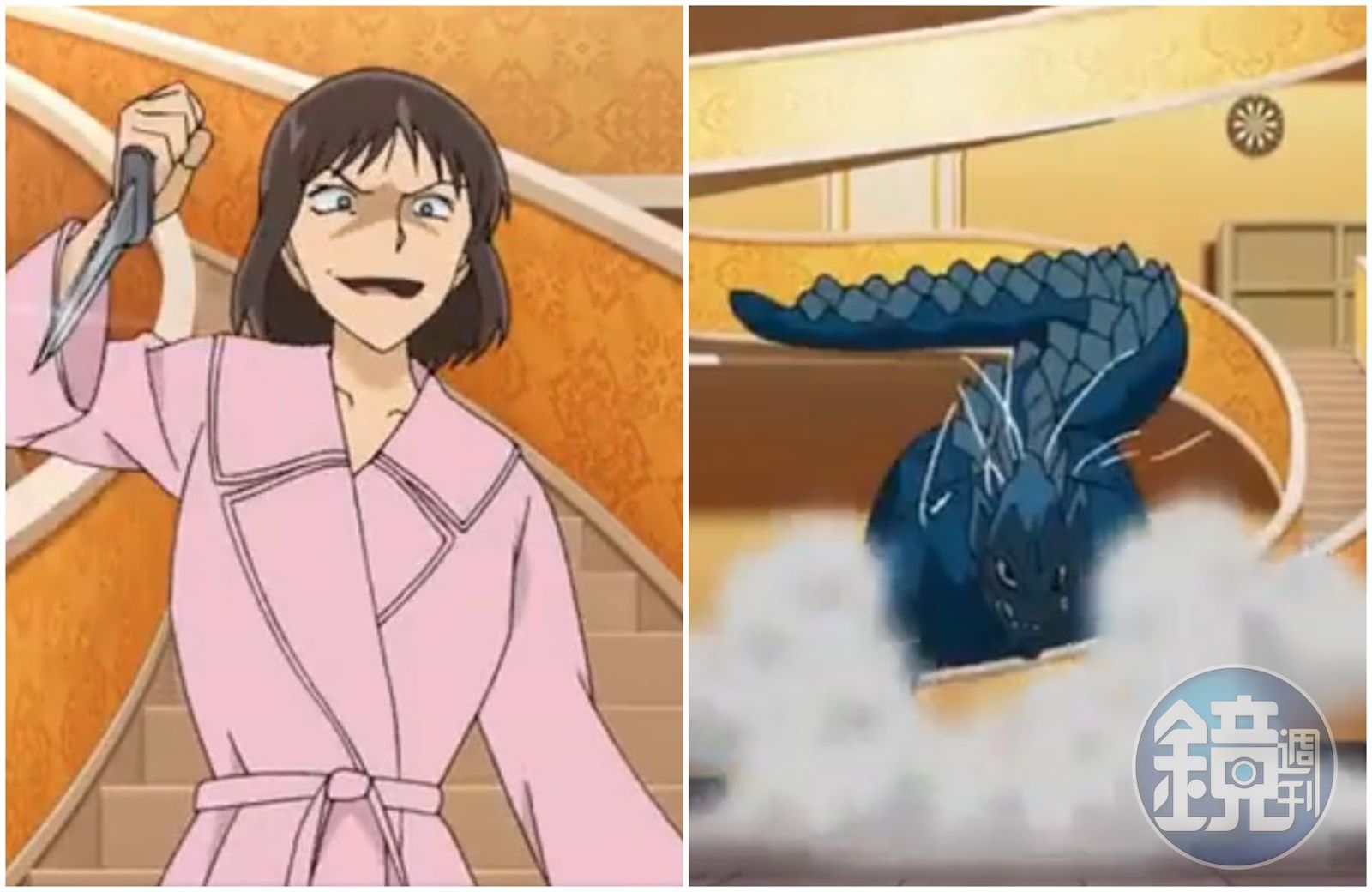 臉書粉專「 Shæchiku しゃちく memes」昨(18日)在臉書發文指出,《名偵探柯南》動畫第879集《少年偵探團躲雨記》中,「女屋主不爽丈夫花太多錢在玩具上面,進而策劃行凶並嫁禍給搶匪,最後女屋主要滅柯南一行人的口的時候,被巨型哥吉拉砸到而落幕。2016就播出了,看這集的時候還覺得到底三小劇本,但現在看起來蠻真實的。」 人妻因不滿丈夫愛蒐藏玩具而痛下殺機。(翻攝巴哈姆特動畫瘋)最後柯南用飛鏢把天花板上的巨型哥吉拉射斷,壓倒在人妻身上。(翻攝tarosma0推特)許多網友看了紛紛去朝聖《柯南》動畫第879集,驚呼「柯南是預言家」「神預言」「原來不是只有辛普森是預言家」「最近事件的女主角看到這動畫後,決定先把哥吉拉處理了」「 看來不能再說柯南劇本各種詭異了,說不定每一個事件都是在預言未來」,也有人笑說「看到這個跑去巴哈看了那集,用整把飛鏢亂丟把吊巨大哥吉拉的線通通射斷是什麼魔法」「朝聖」「柯南是先知」。