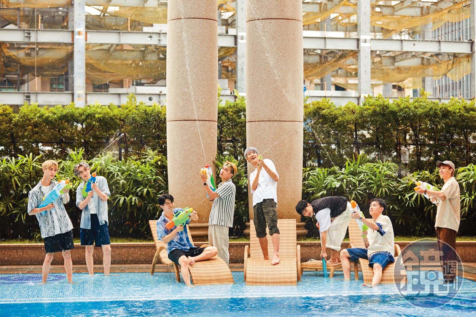土星中8位成員林煥鈞、唐立杰、曹家齊、呂植宇、陳水豐、孔宥鈞、劉新民、張峻瑋再度齊聚,在酒吧和泳池畔嬉鬧、拍照,男孩們不時隨著音樂起舞搖擺,不論是陽光還是型男風,眾人都駕馭自如,到了泳池玩起水槍大戰,立刻又重回20出頭歲孩子該有的調皮,沒多久全身都噴到濕透,連一開始堅決不下水的林煥鈞都「濕身」陪君子。