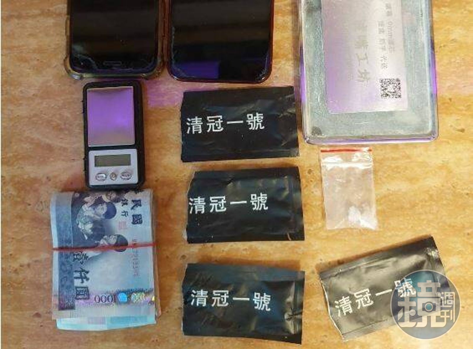 專案小組查扣毒品咖啡包14包及K他命11.24公克、現金10萬元及毒品分裝工具。甚至為了因應疫情,有些毒咖啡包外包裝還印有「清冠一號」字樣,以降低警方戒心;此外,還有毒品外包印製知名南部飲料店「茶XX手」商標、卡通圖案「小熊維尼」「招財貓」及「紅惡魔」等圖樣做為掩護。