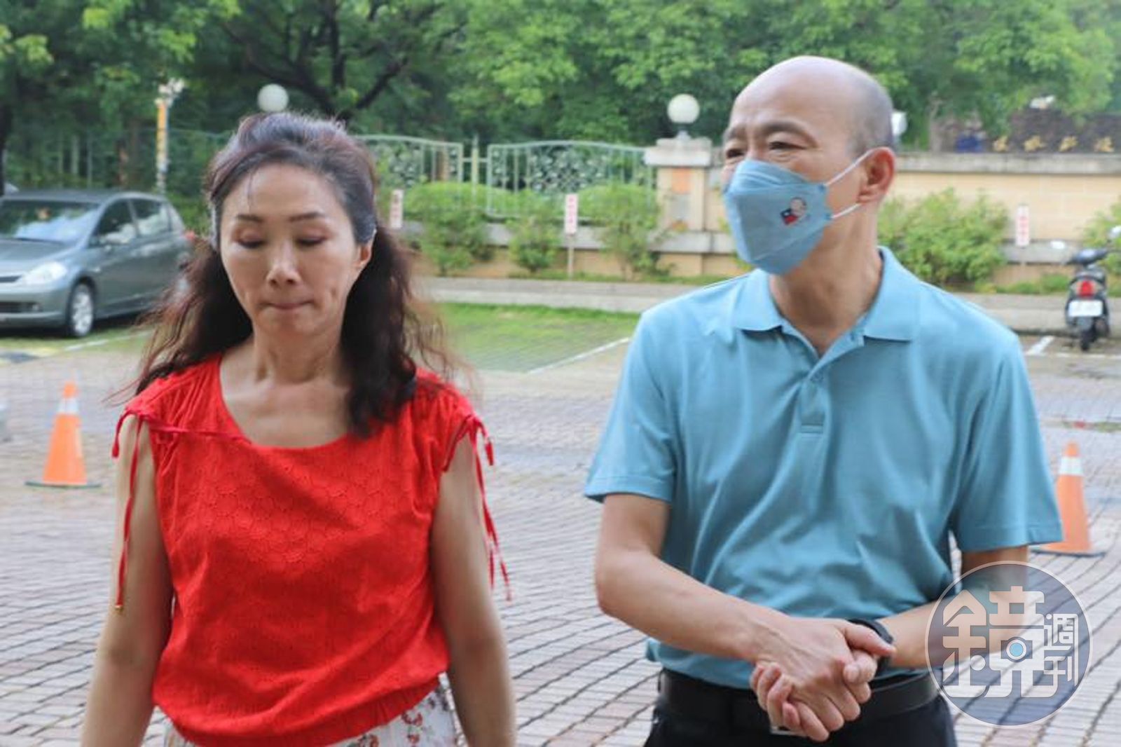 韓國瑜20日在臉書PO出一張和愛妻李佳芬同框的照片,並寫下:「老婆,你不能把我的快打旋風送給別人!」畫面中的韓國瑜雖然戴著口罩,雙手交握看似無奈地望向一旁的老婆,而李佳芬則是視線往地上看,神情嚴肅抿著嘴唇。