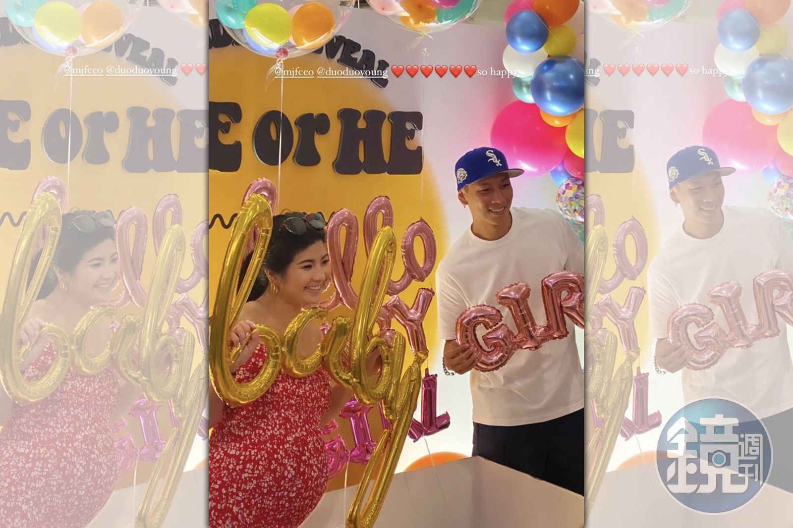 瘦子的親友在IG分享影片,在公佈性別前,全場情緒超High,相當興奮,也相當好奇究竟是女孩還是男孩,最後,他與Jennifer一起掀開盒子,「Hello baby girl」的氣球字樣從箱子裡飄出,眾人大聲地尖叫、不停歡呼,瘦子也開心到跟著音樂跳起舞。