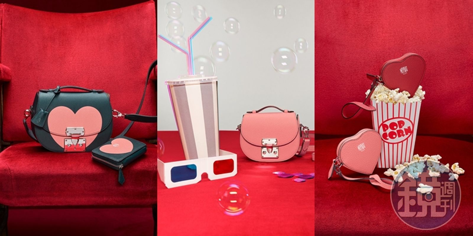 Zippy Heart Marquetryvu斑鳩灰鮮紅色小包。NT$21,300。(MOYNAT提供)Zippy心形零錢包。各NT$11,500。(MOYNAT提供) 更新時間|2023.09.12 20:43 臺北時間