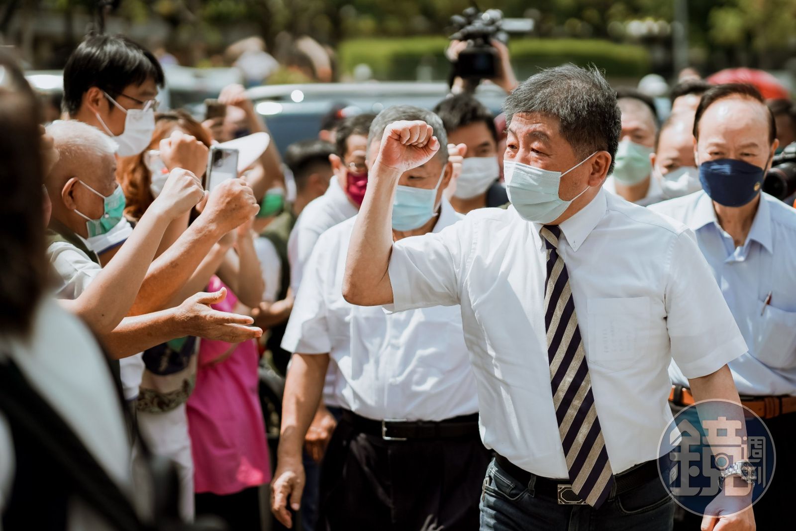 陳時中昨上午赴龍山寺拜拜祈福,龍山寺董事長還贈送「以民為先」的字畫,不過在接受媒體採訪時,有一名阿伯在旁邊大聲陳情,想讓陳時中回答其問題,包括「請問陳時中可以保障台北市民的財產嗎?」「你願意守護台北市市民的財產嗎?」,還提到台灣的金融業等,隨後被2名維安人員架離,不過被架走時阿伯仍繼續高喊主張。當時陳時中則相當錯愕,在阿伯被架走後向記者表示「沒關係我們繼續」。