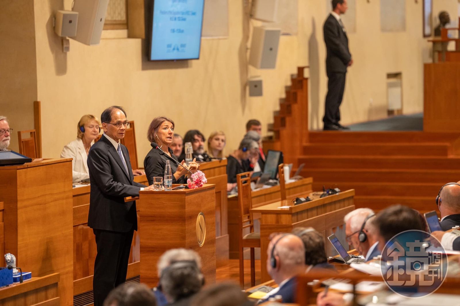 游錫堃說,台灣和捷克雖然相距萬里,有著不同文化、宗教、地理樣貌,但因為我們說著相同的「語言」,也就是「民主」,因此感覺彼此就像認識多年的老友。