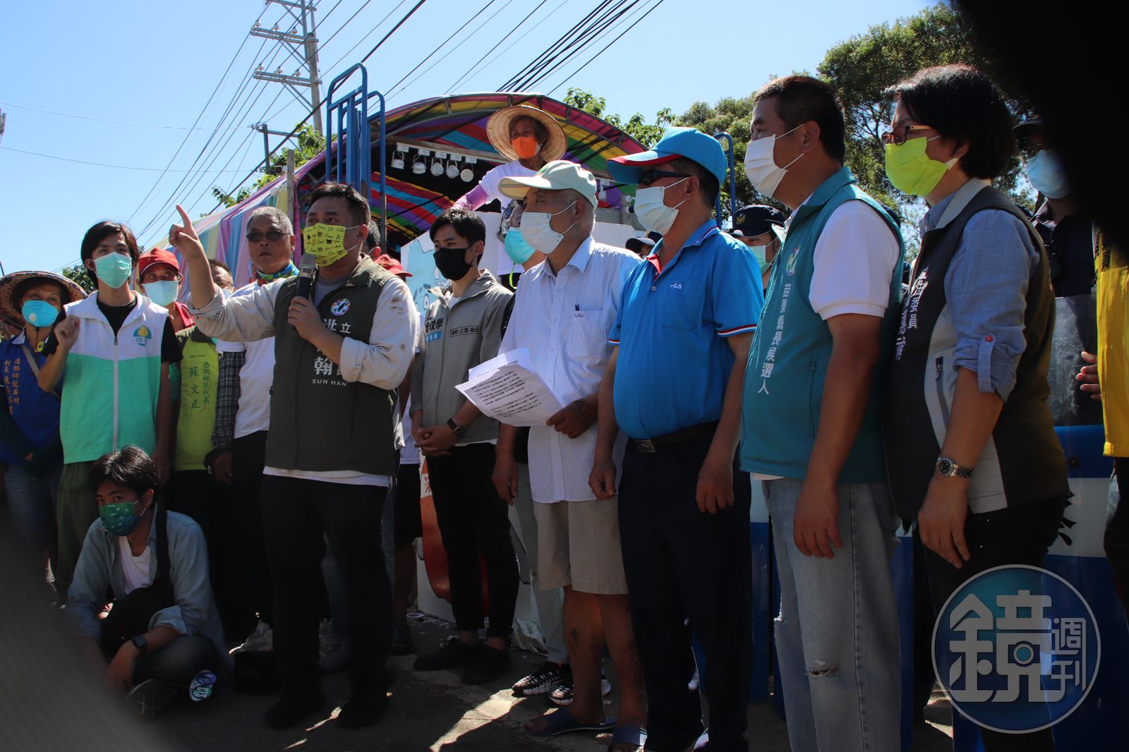 半夜從台北趕到苗栗現場聲援的立委洪申翰指出,凌晨3點,坤輿黑衣人,從側邊山坡突然出現,將鄉親、學生拖入人群中毆打,並拿出胡椒噴霧噴向在場的所有鄉親,還不斷投擲三角錐、椅子向鄉親,有些鄉親被打的頭破血流並送醫。洪申翰也不滿表示,苗縣警察局竟不把盾牌對向施暴的坤輿黑衣人,而是對向手無寸鐵的鄉親,甚至用盾牌推擠鄉親,真的是荒唐至極,怒問「有在保護苗栗人嗎?」