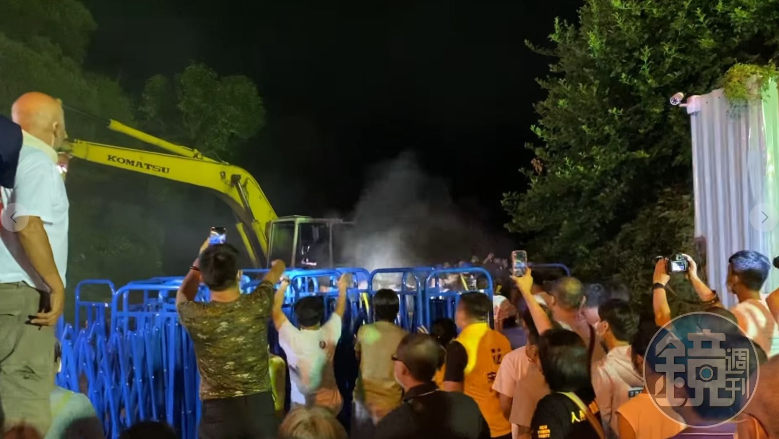 凌晨有大批黑衣人從坤輿內部衝出,攻擊抗議民眾,連前縣長劉政鴻都被噴辣椒水。(翻攝自洪申翰臉書)發布時間:2022.07.21 11:27 臺北時間