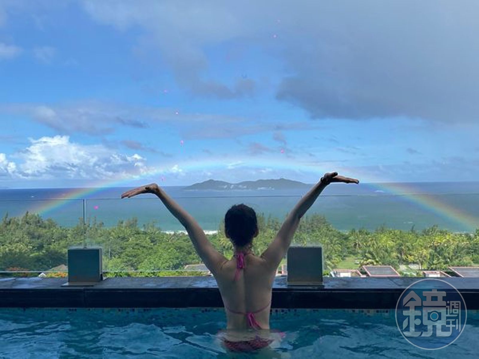 李玟在社群曬出多張比基尼美照,她在泳池中望著大海,天空有著大大的一道彩虹,李玟說「彩虹就在我的面前,太開心啦」,而她的身材纖細,腰部曲線畢露,還秀出半截翹臀,已年近半百來說,身材還是相當火辣,還有網友讚她「身材宛如少女一樣」此外,李玟又曬出素顏照,根本不在意酸民對她素顏的評論。 之前李玟外表遭議論時,她曾說:「沒關係,我從來都沒有覺得自己是美女。我只是想做自己, 要愛我的人是愛我的人品跟才華, 一個人的外表不會永久的」,以正面的態度,面對人體自然的老化。