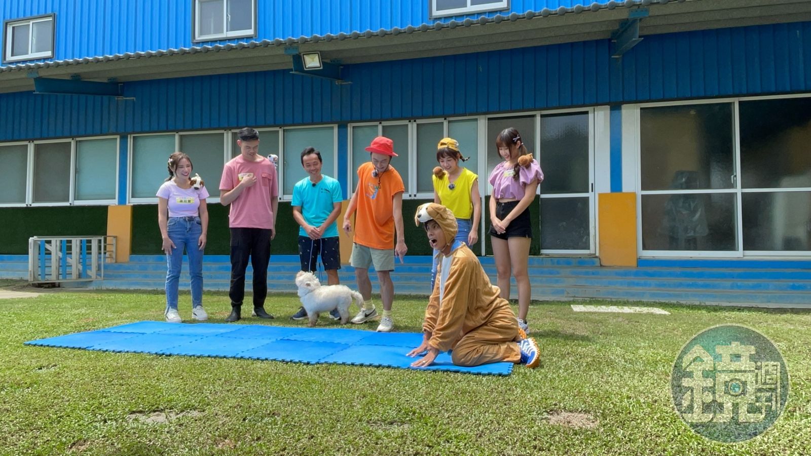 接著職人請大家一人帶一隻狗,要教大家實際體驗如何訓練狗狗,沒想到一歲大的「路虎」瘋狂舔巫苡萱,讓她超級慌張,狗狗太興奮竟然直接把巫苡萱壓在地板上,場面畫面超歪樓,男生們還搞笑說超羨慕,讓巫苡萱哭笑不得還說大家怎麼不救她。
