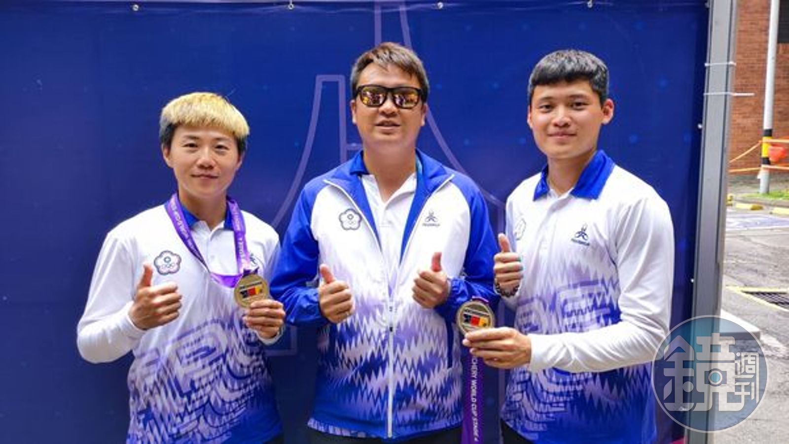 雷千瑩與湯智鈞首局還在調整,略為失常以35比38讓出;次局逐漸找回節奏,以39比35扳平戰局;關鍵第3局兩人表現強勢,以4支10分箭力壓對手的38分,率先以積分4比2聽牌,可惜第4局以1分之差,以37比38打成平手。