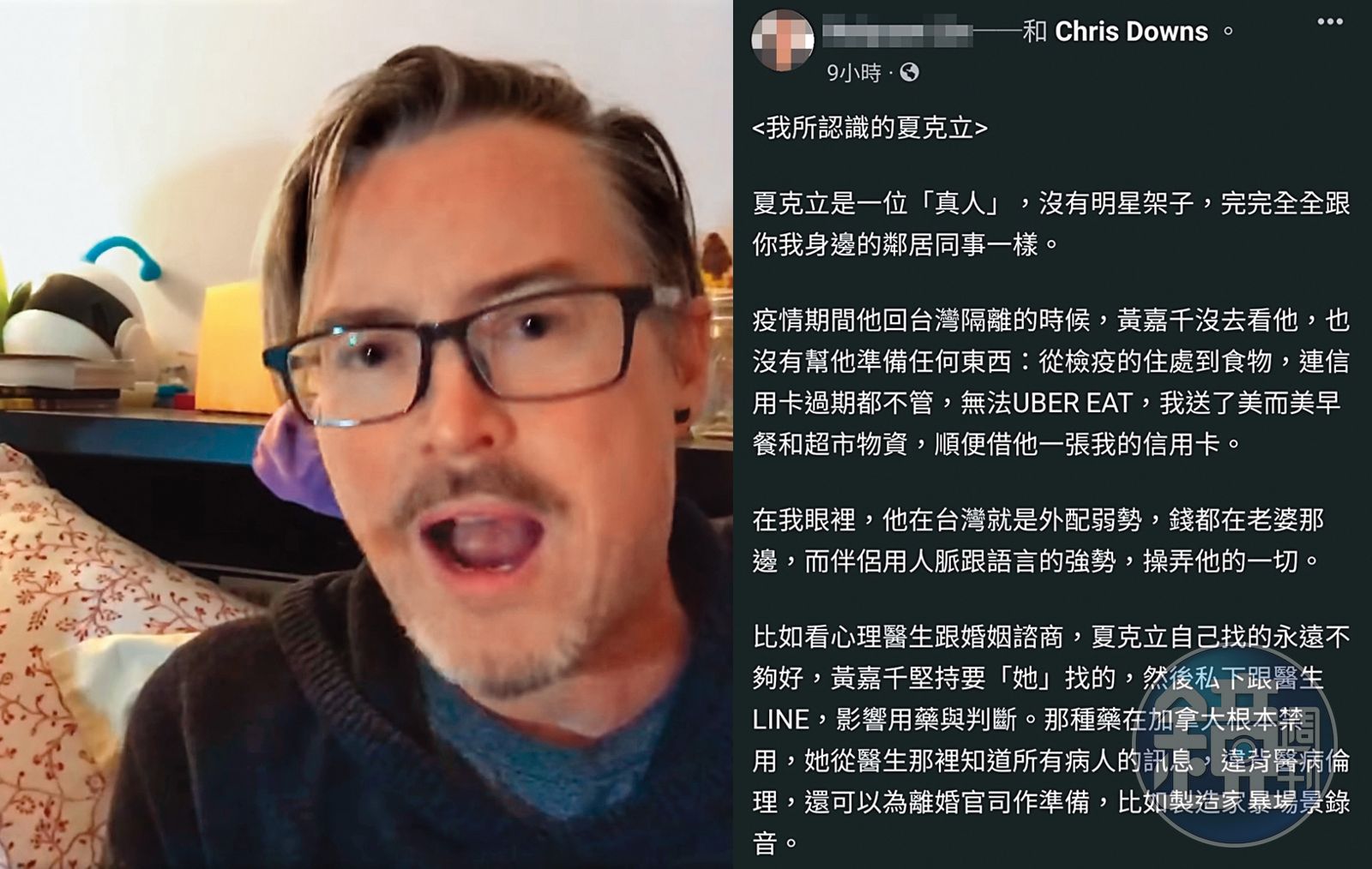 據報導,夏克立現在受到黃嘉千祭出的法律牽制,無法接近「家人」。(翻攝自夏克立臉書)發布時間:2022.07.27 05:58 臺北時間