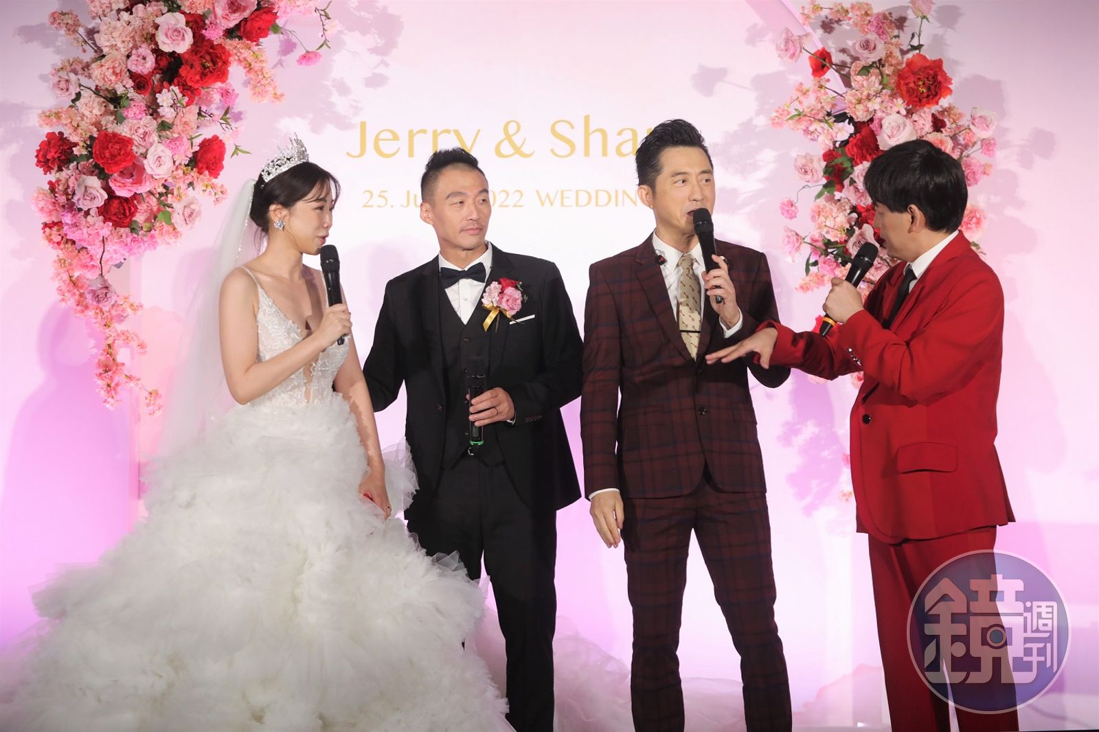 因為婚禮前的每次訪問,新娘口中的偶像從來都沒有提過鄭中基,這比八點檔還狗血的劇情,可說是笑翻所有人。雖然新娘立刻解釋說,高中的偶像是鄭中基,大學以後才又換回庾澄慶。這意外的小插曲,完全是意料之外的「笑」果。祝賀影片播畢後,庾澄慶立刻唱著新娘點播的《缺口》登場,不只新人興奮到激動大叫直呼:「簡直像在作夢!」連全場賓客都嗨翻天、尖叫聲此起彼落,就像在看演唱會一般。