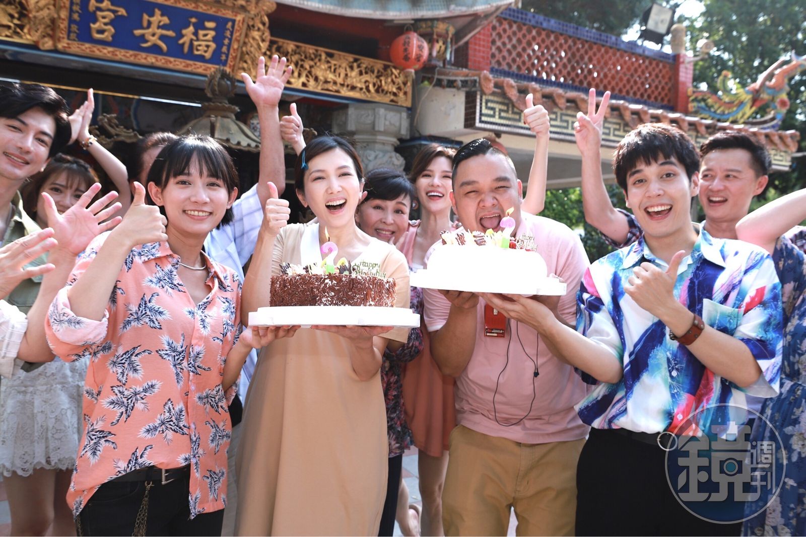 今天(28日)剛好是她46歲生日,《市井豪門》劇組團隊及演員也一起幫她慶生,讓她感動的說「真的很謝謝各位,在她家人都在香港的時候,還收到大家的關心及祝福」,不過她也許下願望,希望疫情可以趨緩,每個人都能照常生活,另一個就是主演的《市井豪門》大家拍攝都能順順利利、收視冠軍。劇中飾演廖家儀老公的何豪傑,也在廖家儀吹蠟燭的那刻,將奶油抹在她臉上,此舉也讓廖家儀玩性大開,追著導演劉恩傑及雷洪,甚至抹大把的鮮奶油幫他們敷臉,現場瞬間玩起「你追我塗」的遊戲,演員群滿場跑,趣味十足。