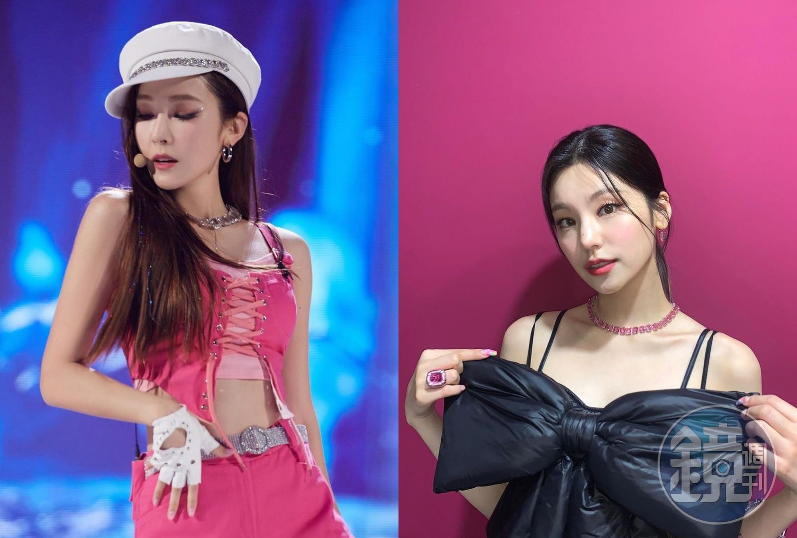 女團ITZY成員禮志配戴Millenia項鍊NT$18,000、Millenia水滴形耳環NT$4,250。(施華洛世奇提供)即將於8月展開首次世界巡演的韓國新生代實力女團ITZY,成員禮志、留真分別於回歸舞台和概念短片中佩戴SWAROVSKI首飾:禮志穿著個性十足的誇張蝴蝶結裝飾黑洋裝搭配粉色Millenia項鍊與耳環,留真則以透明的Millenia耳骨夾為粉嫩甜美的夢幻禮服造型畫龍點睛;只能說Millenia系列很百搭,各種造型在它的襯托下只有加分啊!