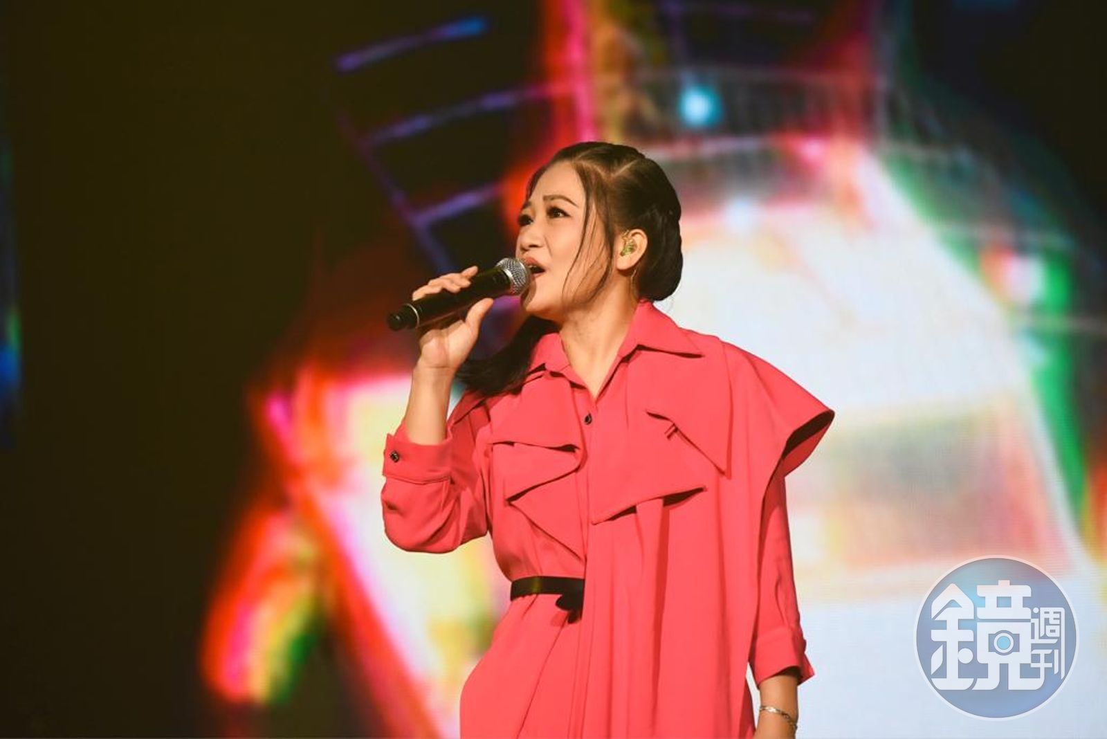 接著金曲歌后黃妃氣勢登場,月初雖因確診無緣出席金曲獎,她在台上分享染疫後仍有咳嗽的後遺症,邊講話還被邊咳,換了很多醫生仍無法痊癒,「確診時反而沒什麼症狀,之前才咳得要死」,這陣子因此壓力大,整天臭臉,很怕台上演出破音,身為在地的高雄女兒對於能參加這次演出相當榮幸,首先就帶來成名曲《追追追》、《非常女》讓觀眾聽個過癮,演唱應景《重逢高雄港》、新歌《無閂》也展現細膩唱功,她最挫的是接下來要錄製新專輯,「希望可以趕快好,如果聲音不夠完美,不敢開錄」。