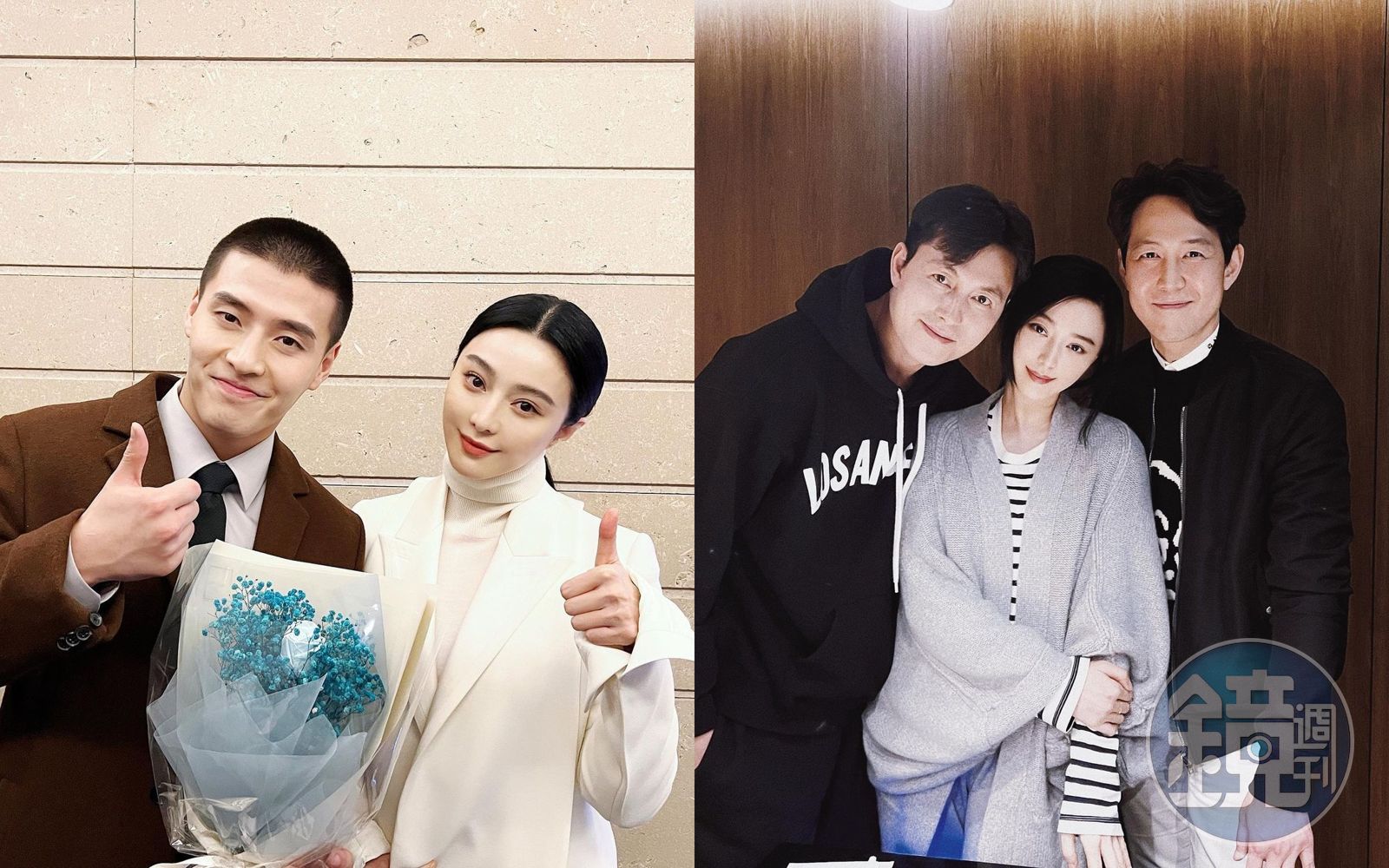 范冰冰在IG寫道「朋友們合影留念」,一看與她合照者來頭不得了。(截圖自范冰冰IG)范冰冰客串了姜河那主演的韓劇《INSIDER》,雖然只出現幾幕仍引起網友討論,照片中的姜河那手持花束似乎是殺青的慶祝合照,而范冰冰與導演姜帝圭也曾以電影《登陸之日》有過合作;朴贊郁導演今年以湯唯、朴海日主演《分手的決心》在坎城抱走最佳導演,與范冰冰合照笑得非常開心。而最近推出首部自編自導自演作品《HUNT》(獵首密令)的李政宰,因為《魷魚遊戲》成為全球知名紅星,范冰冰竟能與李政宰和影帝鄭雨盛合照,令網友驚嘆她的好人緣。