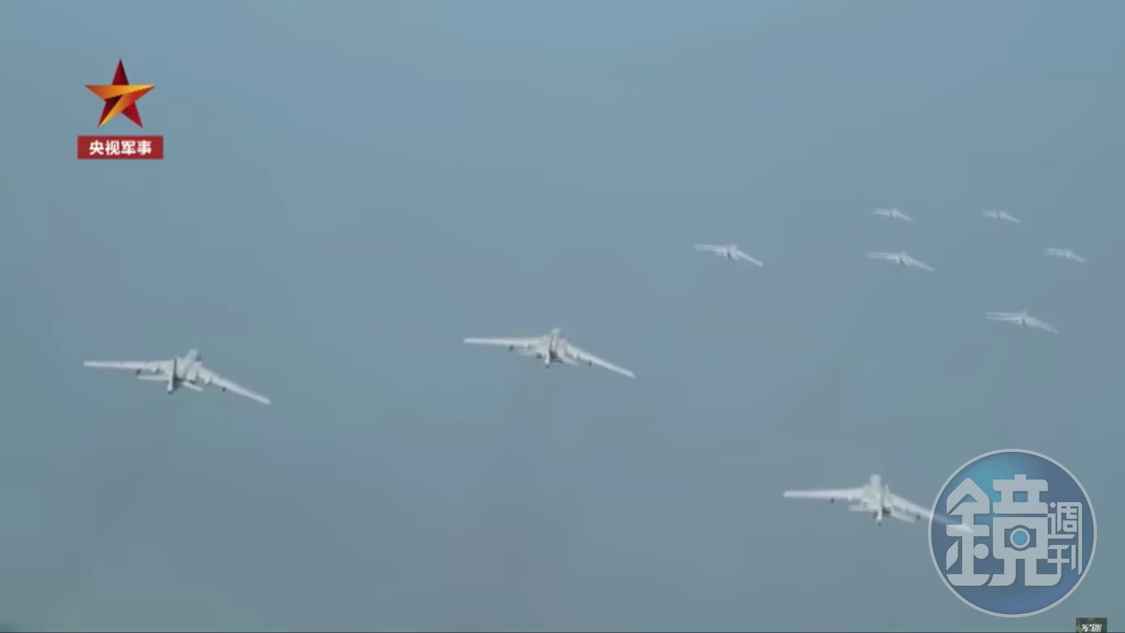 《央視》昨日發布一支展示軍力的影片,標題為「戰神出擊!轟-6K戰機9機同框罕見畫面」,內容指出他們將展開一系列實戰化訓練,數架轟-6K經過長途奔襲,準時抵達任務空域。