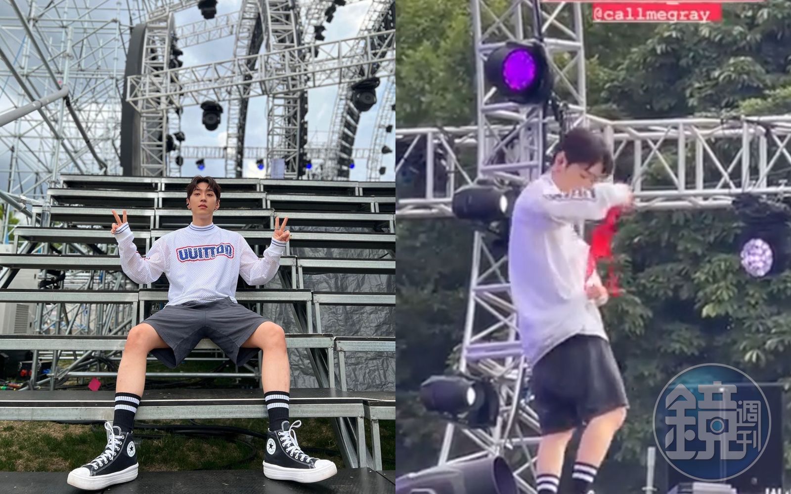 韓國嘻哈歌手Gray近日在倫敦音樂節表演,有粉絲丟內衣上台。(左翻攝Gray IG、右翻攝Dimps #NeedtoKnow 7.12 推特)發布時間:2022.08.02 13:44 臺北時間