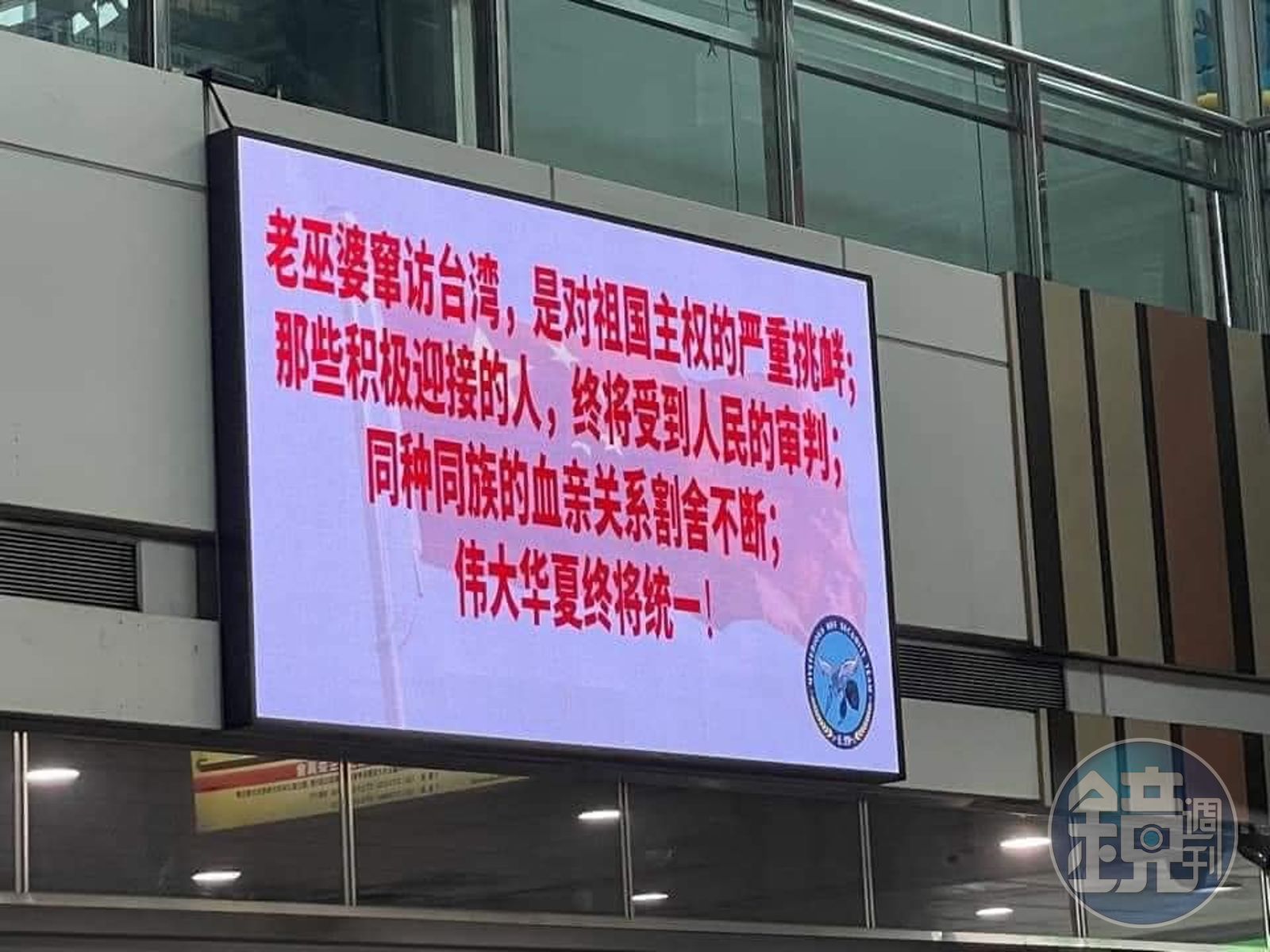 王浩宇今日上午於臉書發文抨擊「離譜至極。台鐵竟然變成統戰工具」,畫面可見台鐵車站大廳螢幕牆竟以紅色簡體字、背景是中國五星旗,寫下「老巫婆竄訪台灣,是對祖國主權的嚴重挑戰;那些積極迎接的人,終將受到人民的審判;同種同族的血親關係割捨不段;偉大華夏終將統一!」