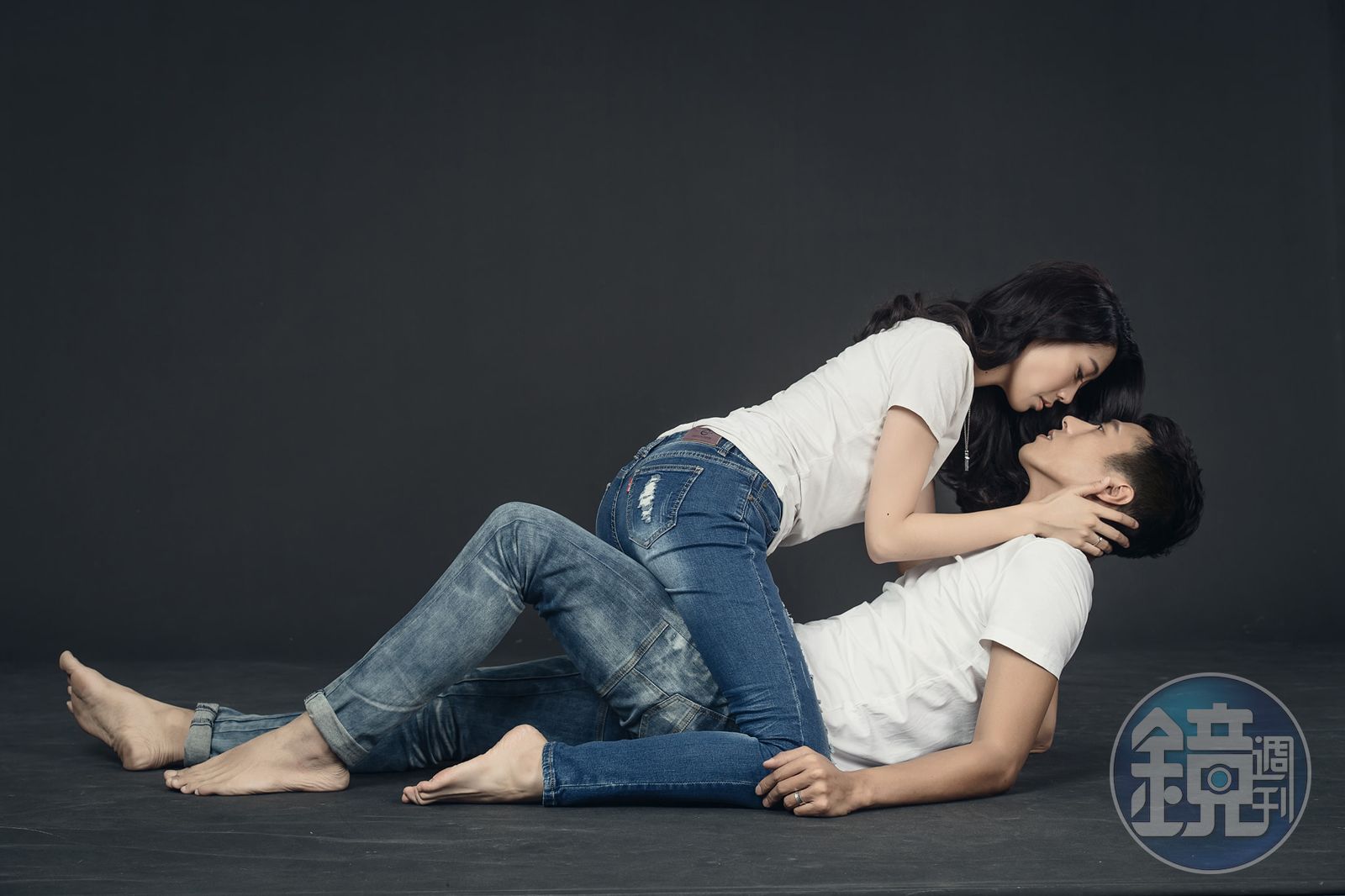 莊凱勛貼出的婚紗照中,有幾張是簡單的白色上衣、牛仔褲,但姿勢可不簡單,其中一張是老婆趴在莊凱勛身上,挑逗誘惑的模樣相當惹火,連郭書瑤也留言:「第二張也太害羞!」 莊凱勛則說到:「妳出乎意料的強大與付出,是最珍貴的後盾,在心裡始終感謝,像婚禮時的宣言一樣『You complete my life』,謝謝妳,我最珍貴的妳,辛苦了」表達對老婆滿滿的愛意。