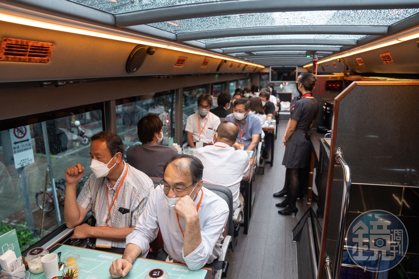 觀光局表示,睽別已久的日本踩線團首發團此次蒞臨台北,特地選擇搭乘台北市雙層餐車,上車享用星級餐點,可說精心安排的行程之一,因為這樣的觀光行程,是日本觀光客非常喜歡的旅遊模式,可以一邊用餐,一邊聽導覽,同時享受台北的街景,一舉多得。