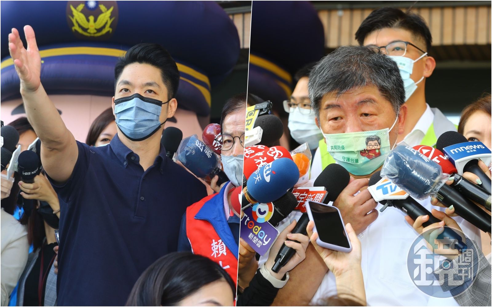 國民黨台北市長參選人蔣萬安與民進黨參選人陳時中,今上午「狹路相逢」,先後前往台北市文山區公所,出席北市府111年治安社區研習觀摩會議。