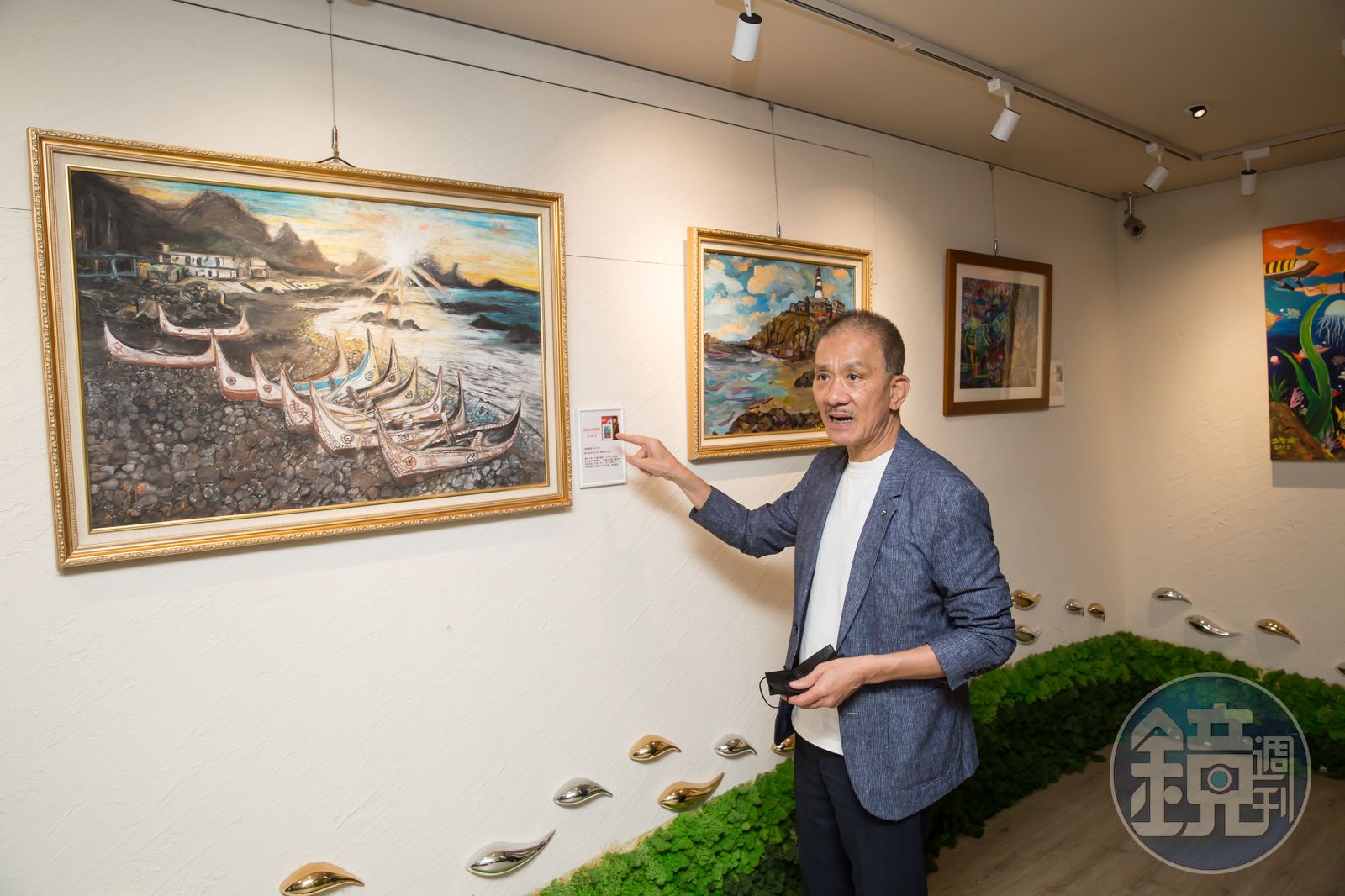 Hi-Q褐藻生活館地下室,還有公益畫廊,有張永聲收藏的身障、病友畫家作品,也幫忙寄賣。他指著牆上一幅字畫,講了個小故事,「那年我跟周大觀文教基金會的周爸爸去北京的醫院探訪癌症病童,在醫院附近看到很多人圍觀一位口足畫家在路邊寫書法,我回飯店後就上網去查,查到一個當地記者經常寫他的故事,我就去跟記者聯絡,找到了畫家的電話,然後我跟他說要買他100幅作品,他說100幅太多了,我說沒關係啊,你慢慢寄給我…」張永聲說,他很佩服這些生命鬥士,也經常留意哪裡有身障藝術家,「他們的作品很能感動人!」