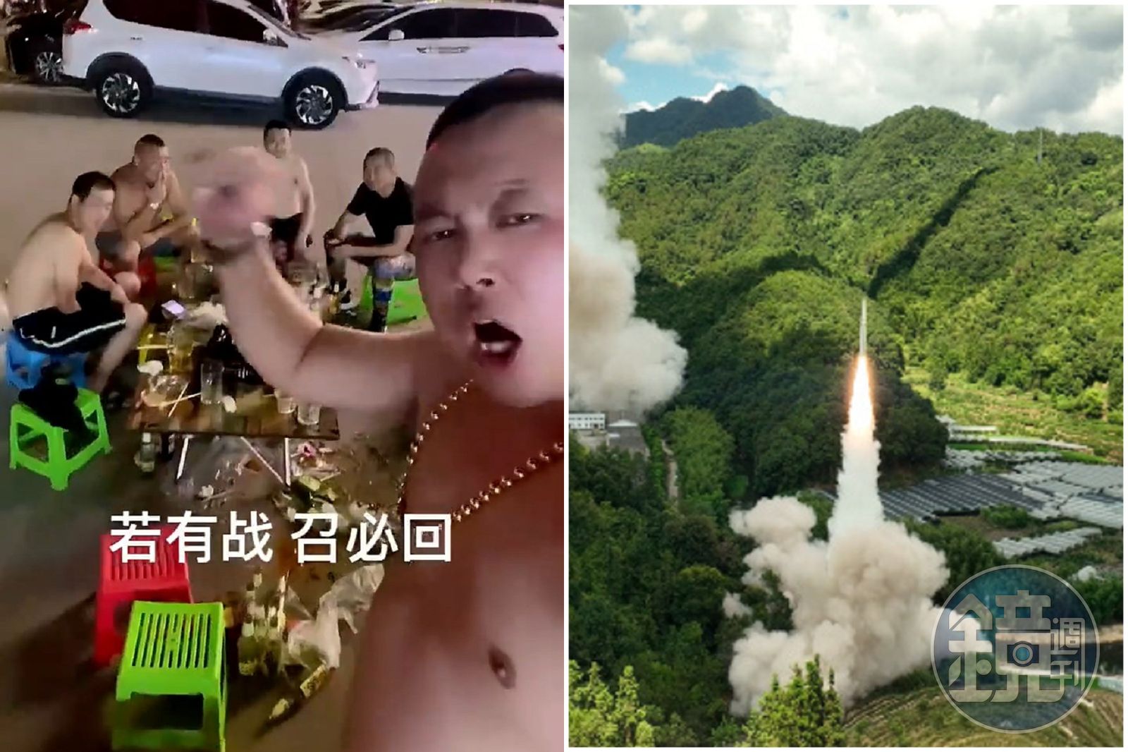 中國《網易》今日分享一段影片,並引發眾多網友關注。內容可見有一名男子,上身赤裸並戴著超級粗大的金項鍊,高喊著口號「若有戰召必回」,他身後的4名兄弟聽到後,也立刻起身呼應,其中有3名兄弟,跟他一樣都是上身赤裸。