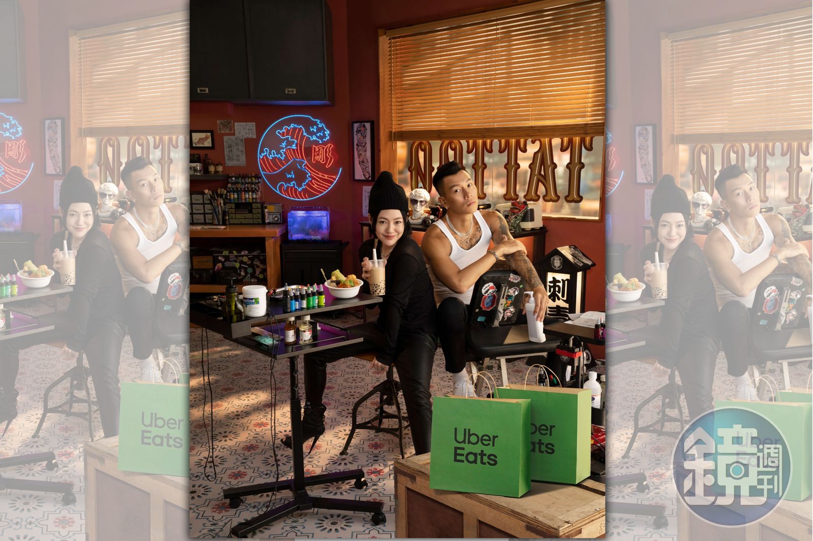 過去廣告都主打明星牌的外送平台,這次直接讓綜藝全能的國際巨星「小S徐熙娣」,及即將舉辦個人演唱會的嘻哈男神「瘦子E.SO」,兩人首次同框合,以「刺青潮流」為主題,影片中穿著吊嘎露出精壯手臂的瘦子對拿著刺青工具的小S問「現在要不要?」,熱情的小S面露迫不及待的神情回答「要!現在就要!」,讓緊張不已的瘦子馬上從 Uber Eats 隨點即送拿出彩色筆害羞問「可以先用這個(打草稿)嗎?」,小S則自信滿滿地拿起送來的珍珠奶茶用力插入吸管大喊「我很會刺的!」