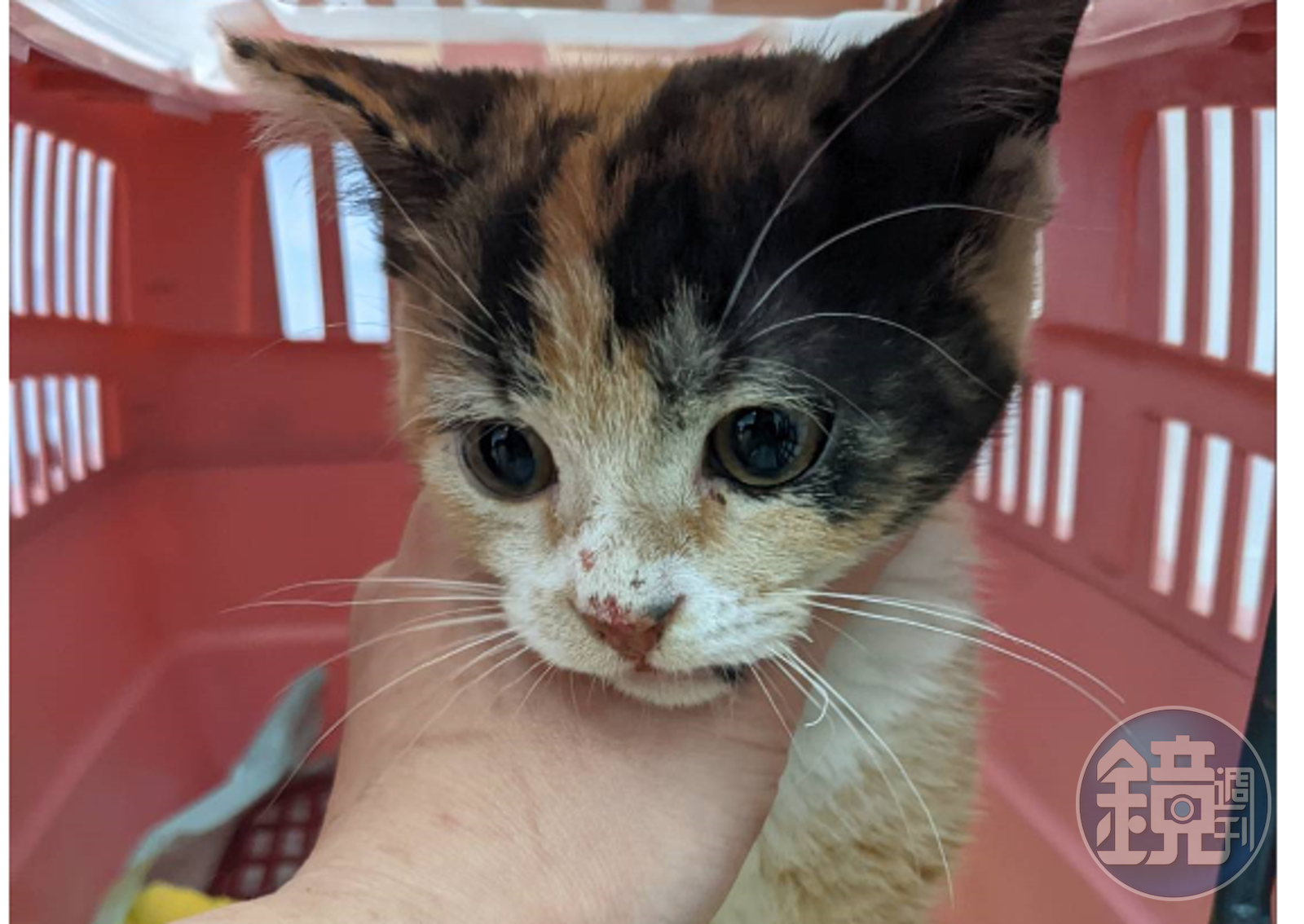 近期動保處接獲私人動物收容中心通報,一名騎士於寒夜中將1隻2個月齡三花幼貓棄置於私人收容中心門口,當時該中心員工都下班,其中1名員工返回查看收養貓隻狀況時,在門口看到這隻遭人棄置受凍的貓,當下趕緊給予貓溫暖環境及乾淨飲食,讓小貓不致挨餓受凍,並立即通報動保處。
