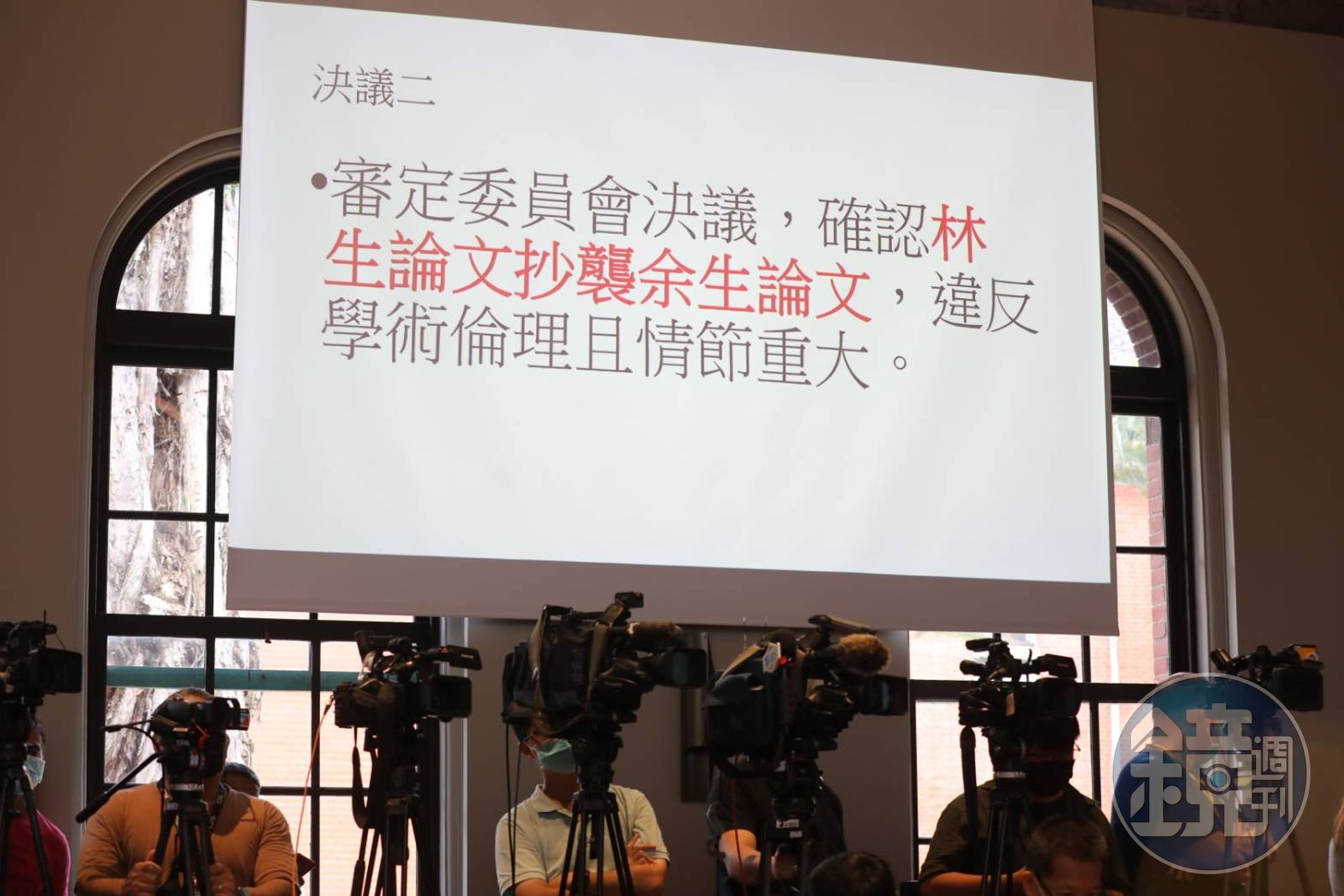 民進黨桃園市長參選人林智堅論文抄襲風波今(9日)終於有了結果,台大上午11時召開記者會,認定林智堅的論文抄襲余正煌的,且情節嚴重,建議撤銷其碩士學位。余正煌的委任律師張祐齊、曾威凱、吳俊達也在下午2時公開說明,除了對台大審定結果深表欣慰外,也表示將針對網路上言論提出妨礙名譽告訴,並考慮對林智堅提出侵害著作權的告訴。