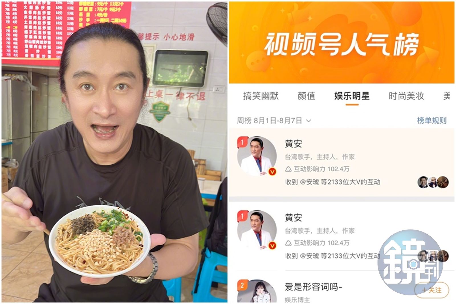 黃安高興分享自己連續獲得「微博視頻號」人氣榜榜首,他的微博每天流量在3,000萬以上,裴洛西訪台、他揚言要嫁給蔡英文當天,更讓他流量破億。