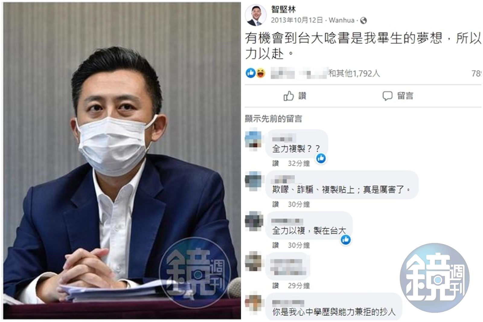 林智堅2013年的臉書舊文被翻出,吸引大批網友朝聖狂酸。(右圖翻攝臉書)發布時間:2022.08.11 13:36 臺北時間