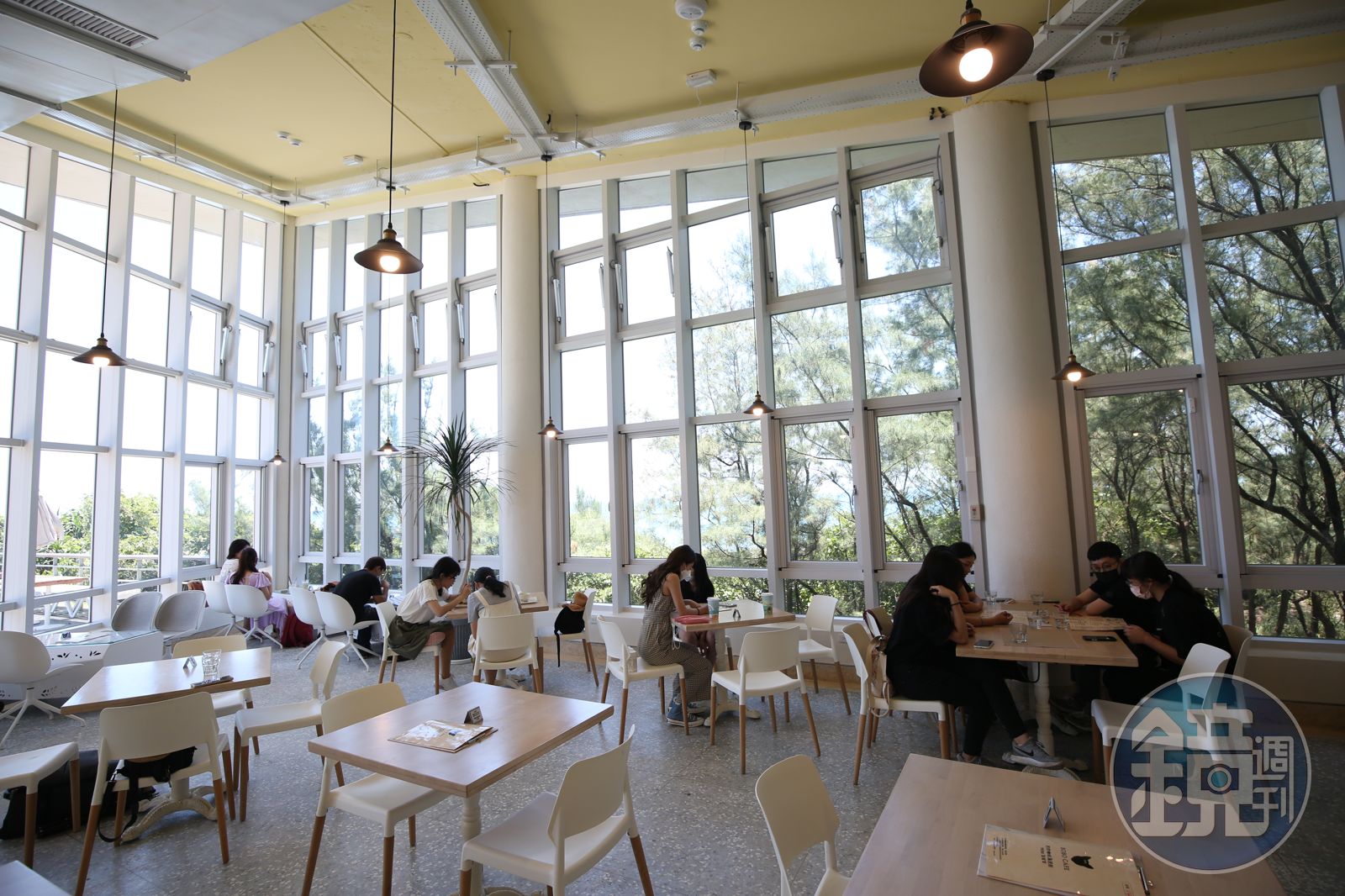 上午9點出發,走完青山瀑布步道後下山也不過是近午時分。翻開手機地圖,目標是找間冷氣強、食物美味,最好有咖啡的店,「豹豹咖啡 海邊館」恰恰符合我「納涼」的所有條件。緊鄰白沙灣海水浴場的咖啡館,有著純白色外觀、大片落地玻璃窗,建築依偎著遊客中心,最大賣點就是能望著大海和沙灘享受美食。
