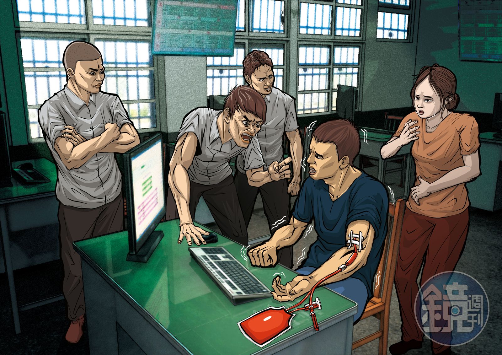 新北一對情侶被拐到緬甸KK園區做詐騙,半年後才逃回台灣。(讀者提供)他告訴本刊,遭囚禁期間,除了每天要上班17個小時,深夜11點半到凌晨2點還有跑步訓練,下午3點半至5點則是大會操時間,林林總總扣下來,每天只剩2、3個小時可以睡覺,而且沒有薪水,與其說是軍事化管理,還不如說是凌虐。雖然被操得半死,但每隔一段時間,集團就會幫他抽血,榨乾他的剩餘價值。