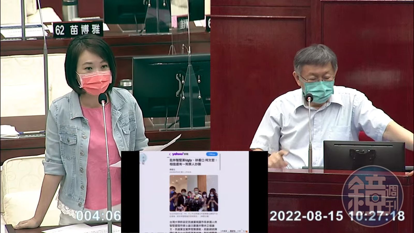 而之前針對林智堅論文抄襲爭議,民眾黨主席柯文哲曾批評「Ugly」(醜陋),還稱絕對不是個案、抄襲的人「一狗票」。對此,今在議會質詢上,議員簡舒培就拿出此事來質詢,並反問柯文哲,蔡壁如的論文抄襲一事,是否是柯文哲口中的Ugly?