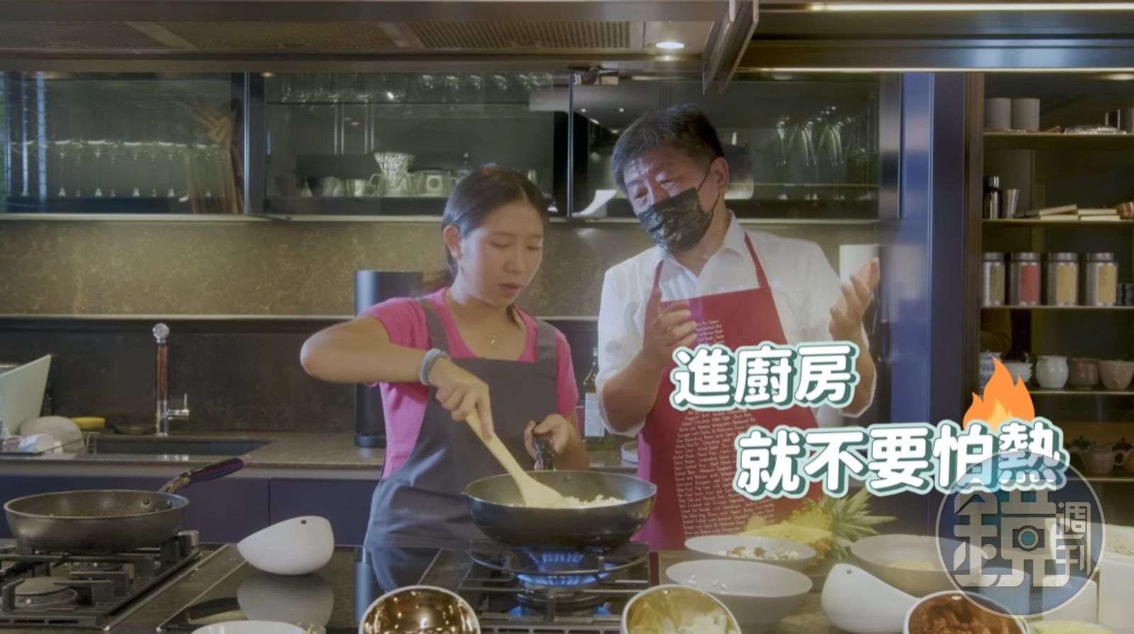 陳時中過程中還不忘憶起當年勇,學起大廚炒菜「甩鍋」的動作,稱自己年輕的時候可以把鍋子「丟起來翻一圈」,但現在沒辦法了。在做炒飯的時候,陳時中拿著鏟子的手疑似不耐大火高溫,被燙得頻頻縮回去,Liya則接手示範炒飯的方式,並說這個練習一下就會了,陳時中也有感而發地說:「進廚房就不要怕熱!」