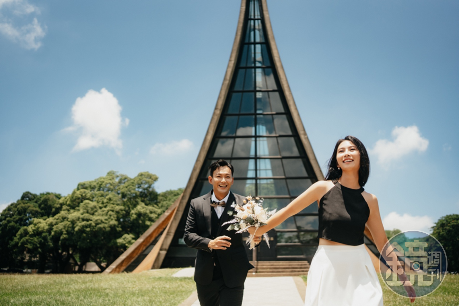威廉與卓君澤婚紗在兩人故鄉拍攝。(歡迎光臨公司提供)婚紗拍攝地選擇在兩人的故鄉台中及南投,兩人活潑玩鬧的個性讓婚紗照充滿幸福感。卓卓表示「威廉拍照忍不住一直擺偶像的姿態,逗得我一直笑場,但也因為這樣才有最自然互動的照片」。攝影師則忍不住稱讚:「從沒看過比新娘還會擺姿勢、表情的新郎,太好拍了!」