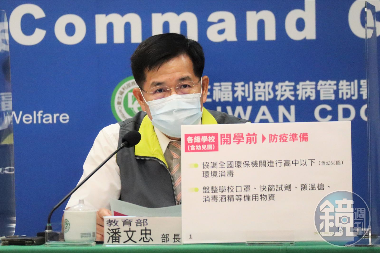 全國中小學開學倒數,教育部長潘文忠今(22)公布最新校園防疫政策。(指揮中心提供)發布時間:2022.08.22 16:16 臺北時間