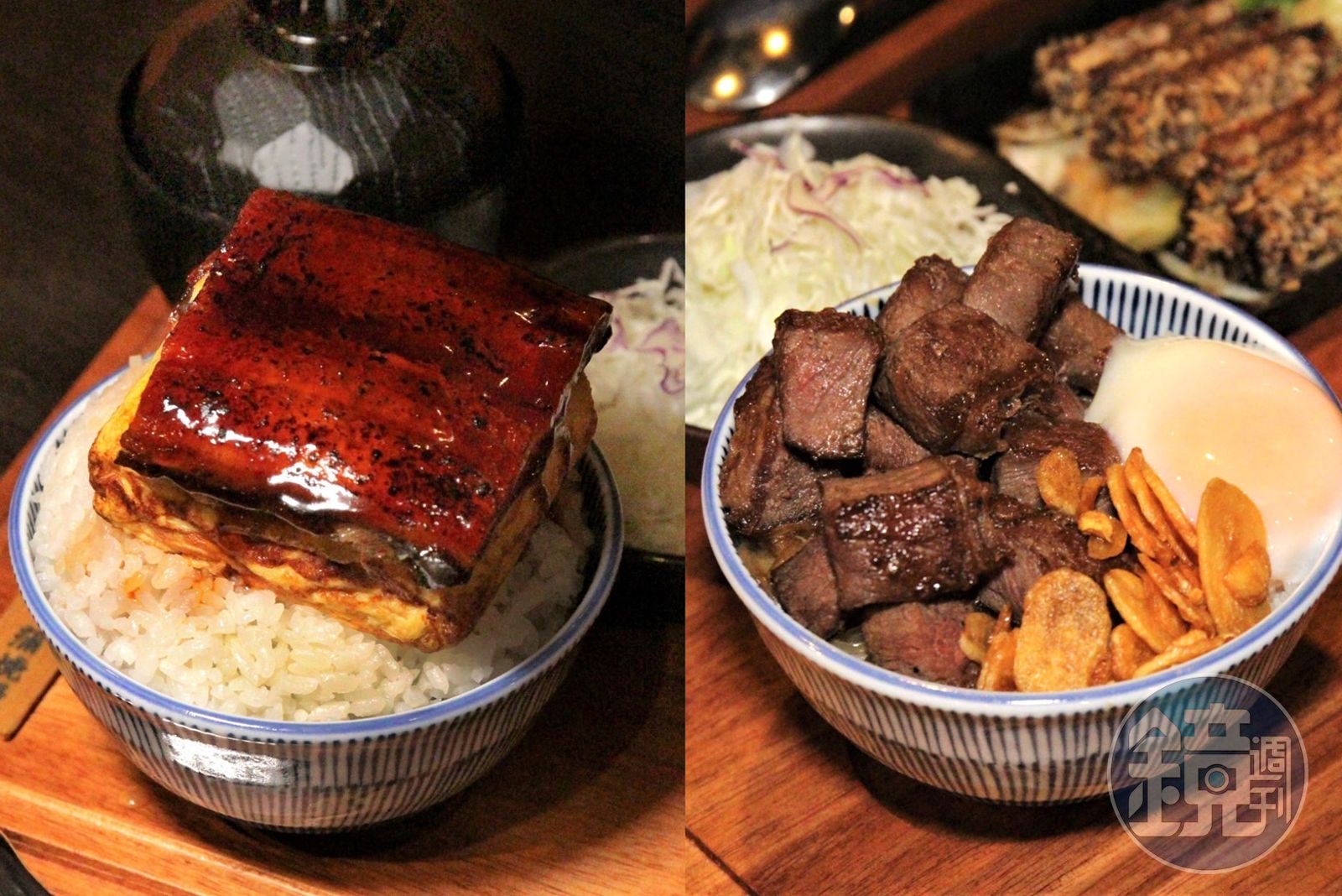 「開丼」順帶延長了「土用丑之日」,讓鰻魚和玉子燒組成夢幻組合,打造出視覺效果驚人的「厚玉子燒鰻丼」,厚達2.5公分的玉子燒上鋪著豐腴帶醬香的蒲燒鰻魚,跌在超過碗口水平線的米飯,對於小鳥胃來說可能是垂涎又畏懼的挑戰。除了丼飯,還有精選台灣鰻魚的「酥炸鰻魚鐵板定食」,將涮上蒲燒醬汁的豐美鰻魚下鍋油炸,入口後外層微酥內軟嫩,一次補足滿滿蛋白質與維生素。