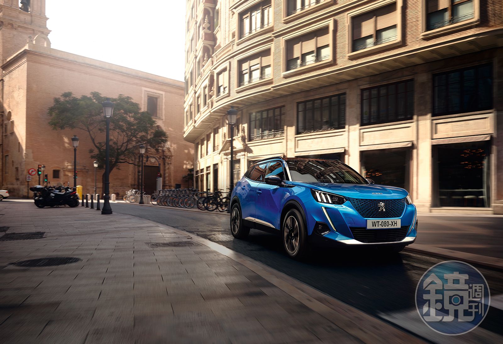 PEUGEOT e-2008傳承品牌造車語彙,延續PEUGEOT 2008經典外觀造型,前衛創新大膽設計,結合車身同色放射狀水箱護罩、電動車型專屬e銘牌式樣、C柱橫向條紋拉花裝飾等專屬識別,象徵電動車型未來科技表徵。